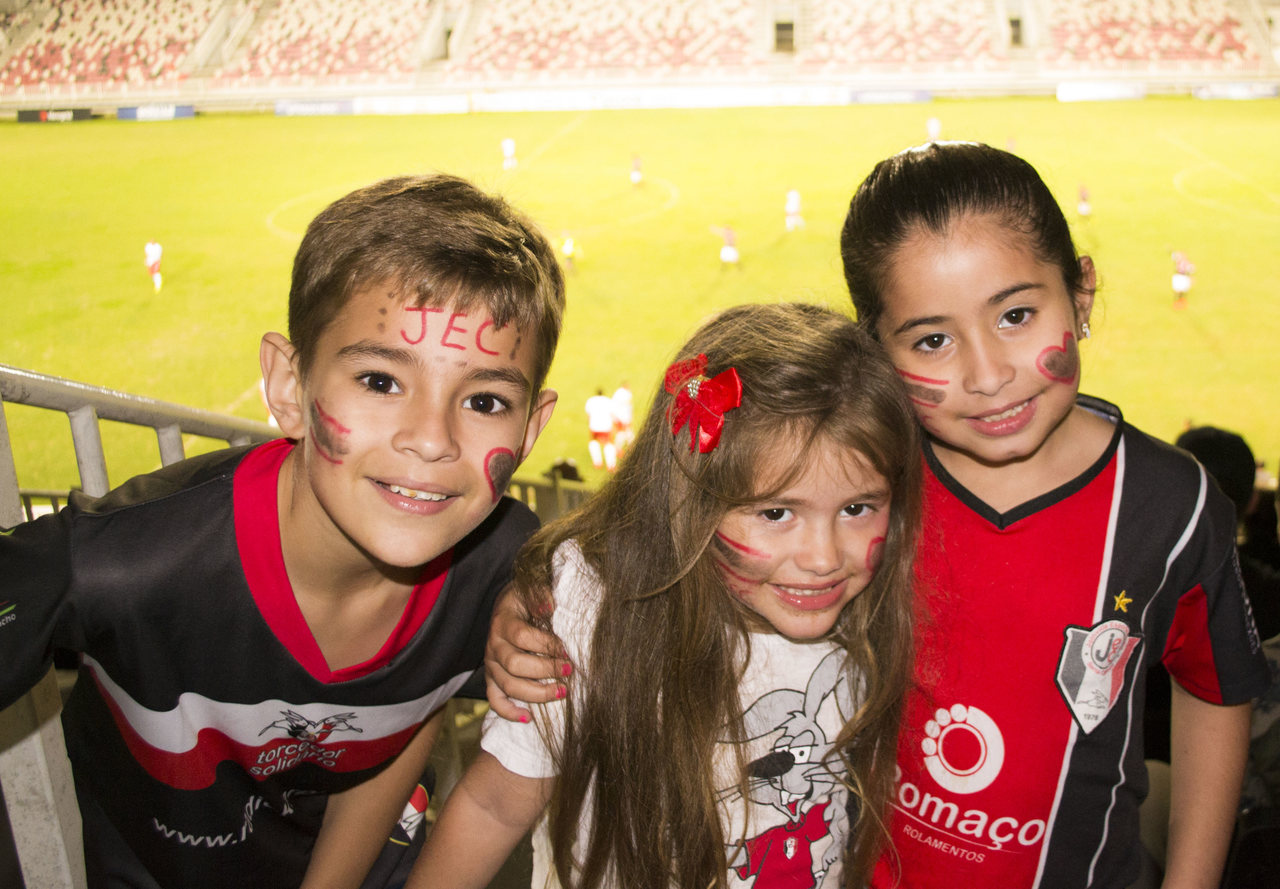 O jogo, porém, teve a atenção dividida com uma parte da arquibancada. Aos gritos constantes de “JEC, JEC, JEC!”, as cadeiras no canto esquerdo do setor coberto foram ocupadas por diversas crianças.