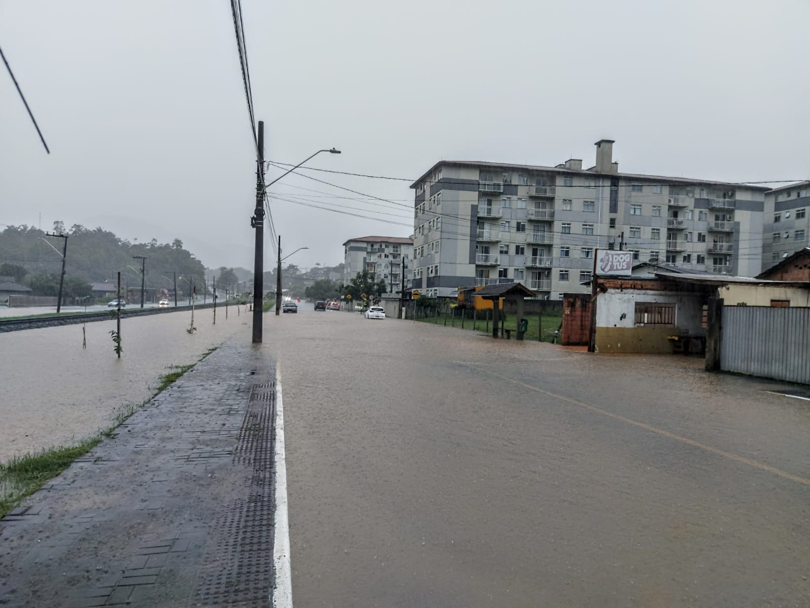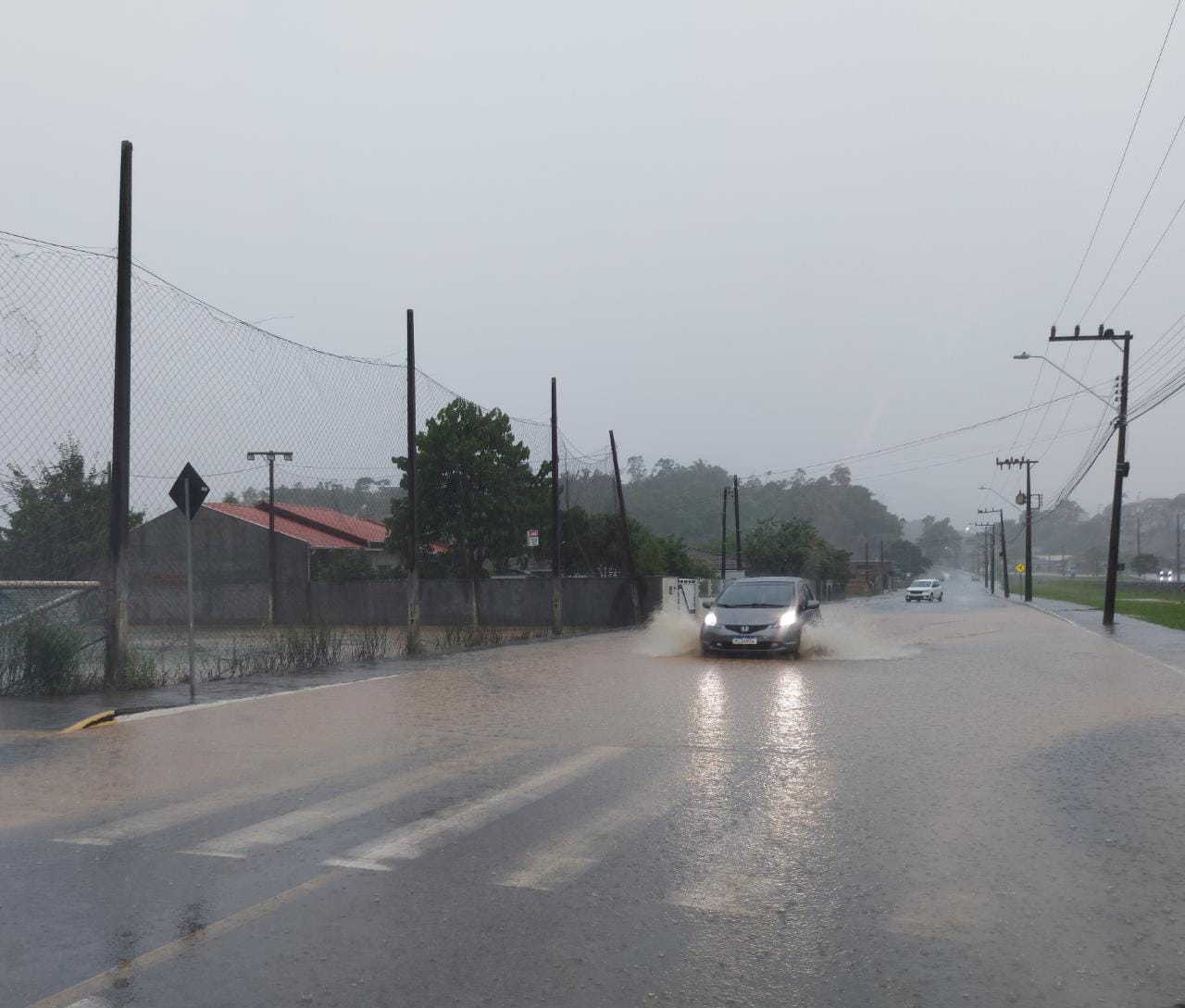A forte chuva que começou no fim da tarde desta quarta-feira (5) já causou diversos pontos de alagamento em Jaraguá do Sul.