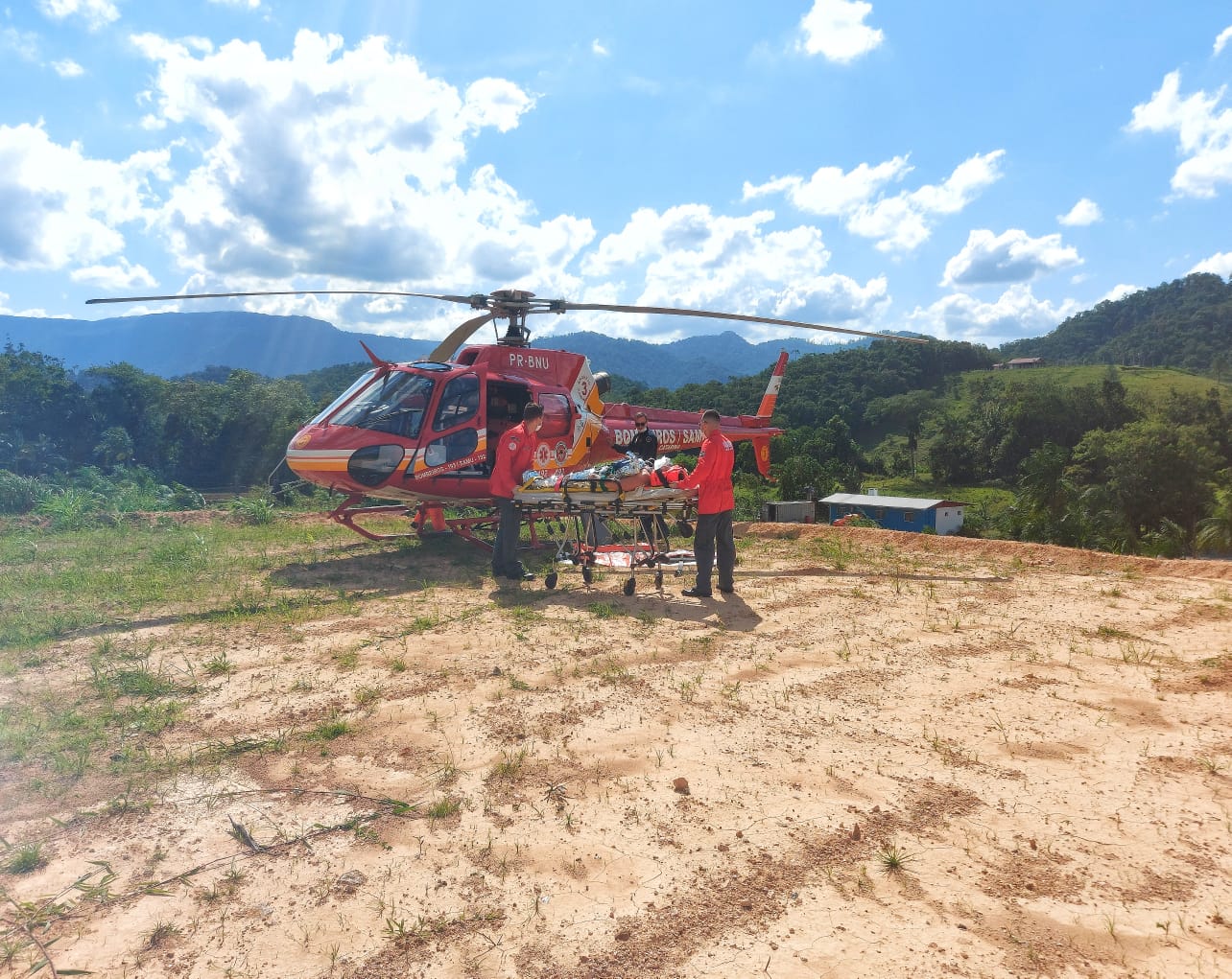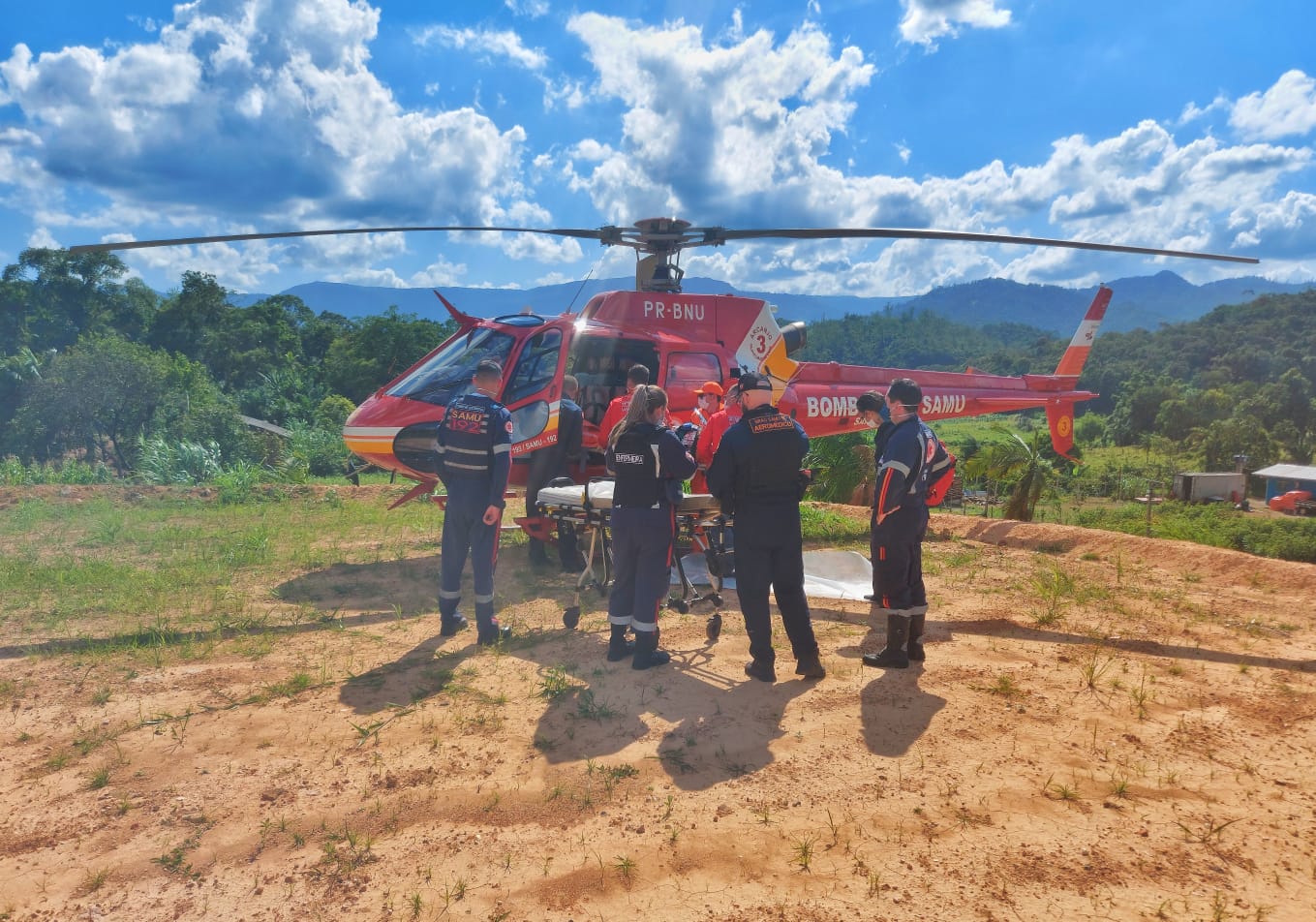 Os bombeiros voluntários e o Samu (Serviço de Atendimento Móvel de Urgência) foram acionados para a ocorrência, e a vítima foi levada ao Hospital São José pelo helicóptero Arcanjo 03.