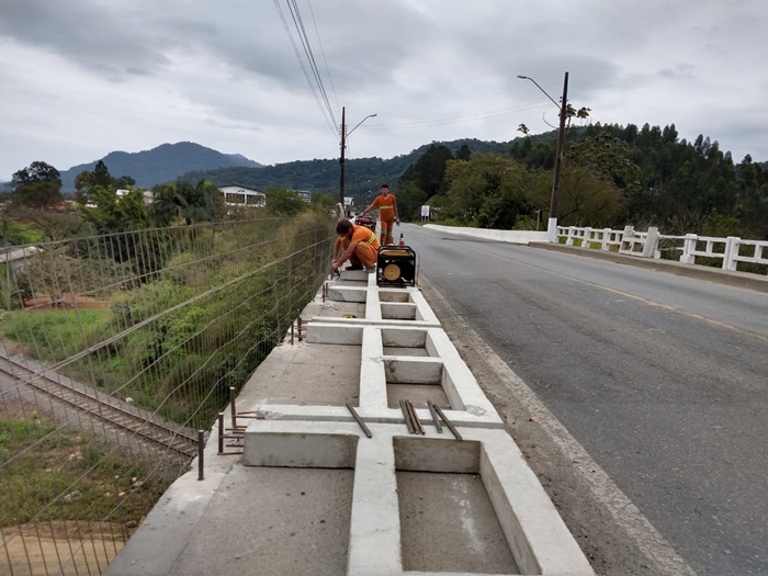 O viaduto sobre a linha férrea na BR-280, nas proximidades da empresa Mannes, em Guaramirim, está recebendo melhorias. Funcionários da empreiteira contratada pelo Deinfra (Departamento Estadual de Infraestrutura) estão no local, onde permanecem pelos próximos dias, até que os reparos necessários sejam concluídos.