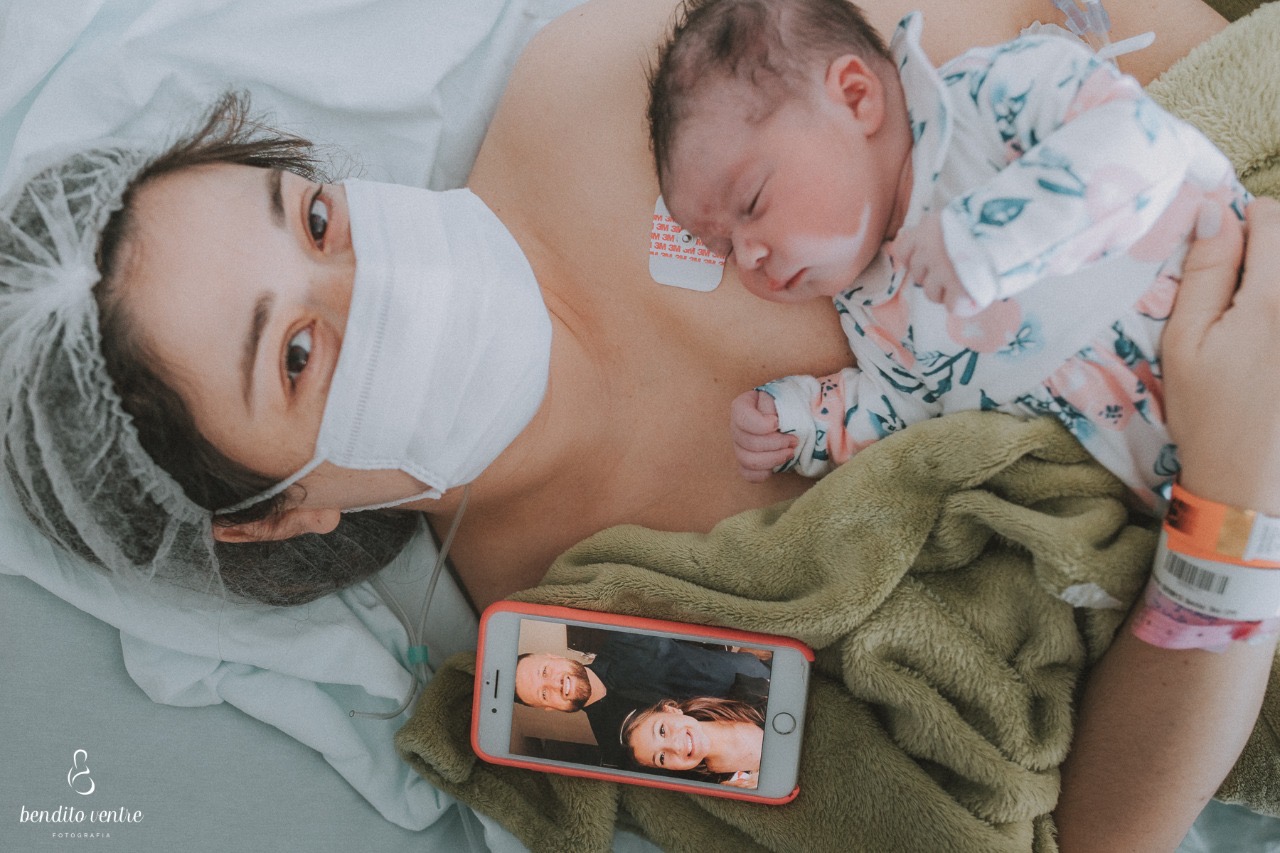 No Hospital São José, chamada de vídeo aproxima casal durante o nascimento da filha