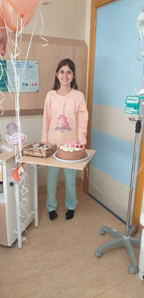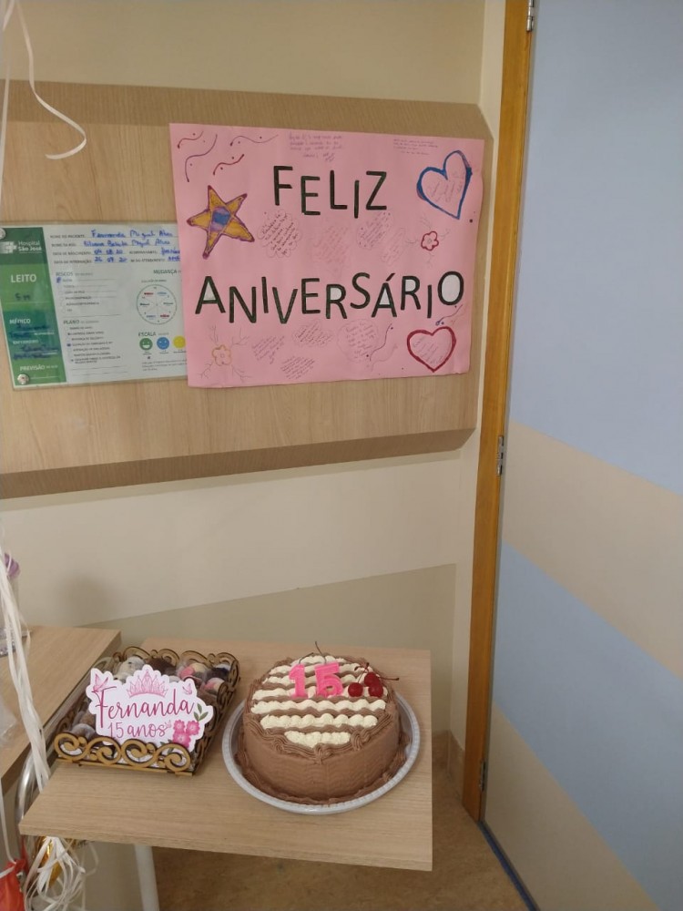 Com apoio de toda equipe, Fernanda recebeu muito carinho no dia em que completa seus 15 anos. Durante alguns minutos, a paciente que está hospitalizada para o tratamento contra um câncer, viveu momentos longe das medicações e exames. Sem a presença física dos amigos, mas com o objetivo de trazer alegria à jovem, a equipe multidisciplinar preparou uma festa à distância.
