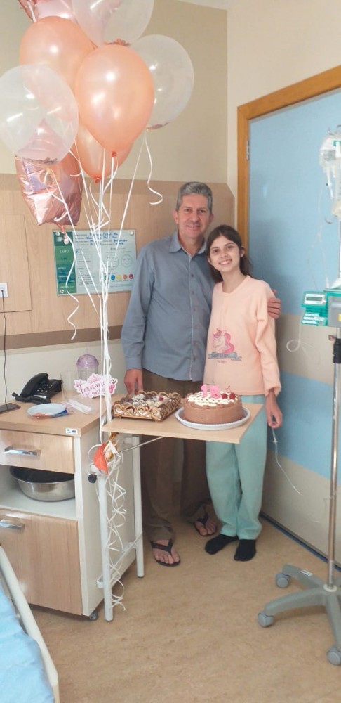 Pela janela, era possível ouvir os parabéns, palmas e “sentir” a alegria que era emitida pelos corredores e janelas a fora do hospital. “Fernanda é uma menina doce, há oito meses descobriu o tumor, o tratamento é intercalado por períodos em casa e internações hospitalares. Esta não é apenas mais uma internação, em meio à pandemia, internação em UTI, infecção. Hoje é um dia muito especial. Comemorar 15 anos é sempre uma emoção, um período de mudanças. Ela viverá uma nova fase na vida e isso é muito importante. Não poderíamos deixar passar; 15 anos são mágicos, e nós, da oncologia pediátrica do Hospital São José vivemos muitos momentos mágicos com nossos pacientes e hoje não poderia ser diferente”, relata a médica responsável pelo serviço de oncologia pediátrica, Adalisa Reinke.