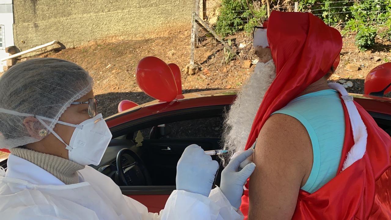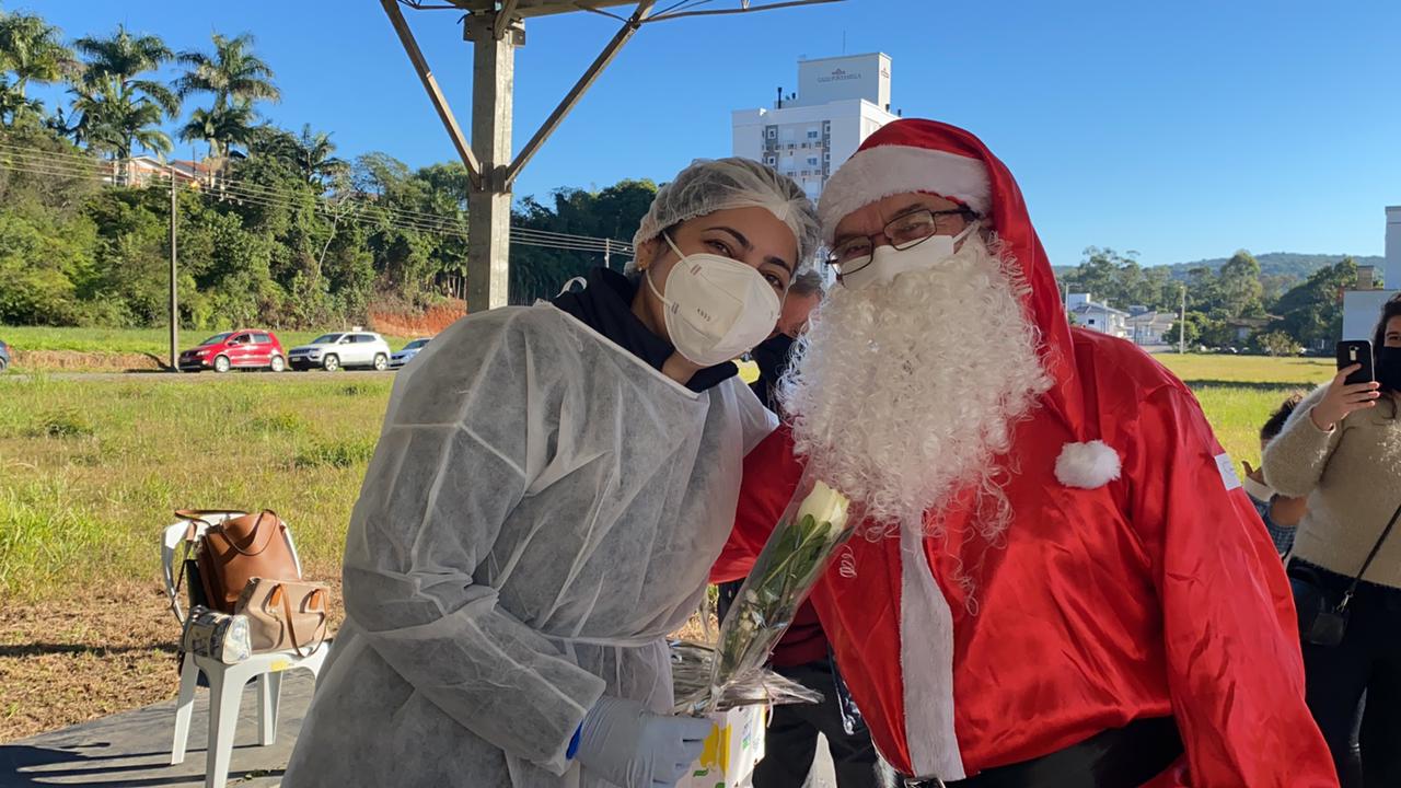 “Eu prometi a mim mesmo que quando chegasse a minha vez de receber a vacina eu iria vir vestido de Papai Noel e também quis homenagear esses profissionais que são guerreiros”, comenta.