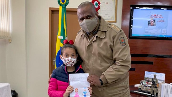 Em sua cartinha, a garota escreveu que, quando crescer, quer ser policial e que seu sonho era andar a cavalo. Com muito amor e carinho, a menina agradeceu os militares pela realização de seu sonho.
