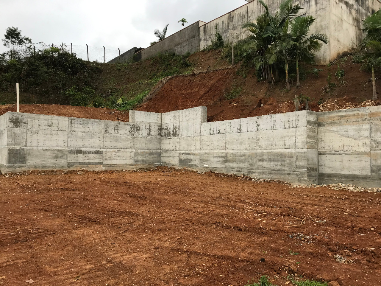 - Muros de contenção em concreto armado;