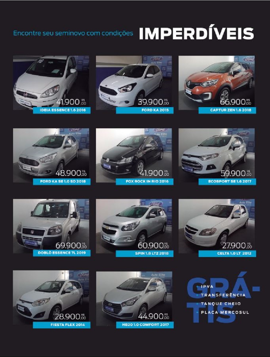 A loja está com vários veículos novos na promoção até na segunda-feira (30) e esta é a oportunidade perfeita para você trocar de carro e ter um seminovo ou um zerinho para chamar de seu. Dá uma olhada nos preços imperdíveis e nas condições que a marca preparou: