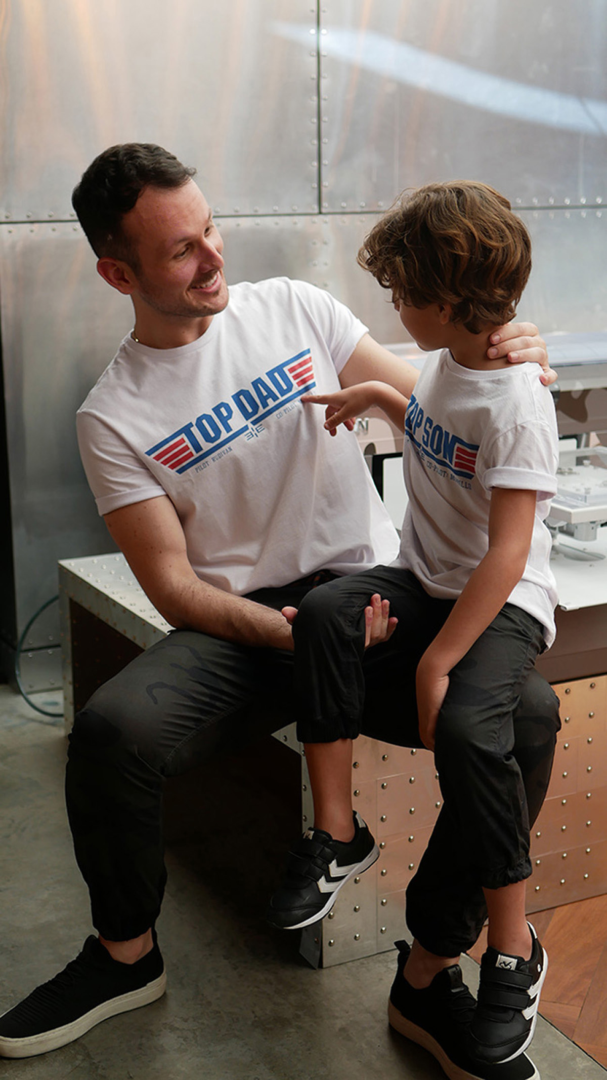 A Hangar 33 é conhecida por ter produtos cheios de referências do universo aviação e neste dia dos pais apostou na campanha “Tal Pai Tal Filho” que desenvolve peças iguais para pais e filhos. De acordo com o local, a iniciativa é uma forma de dar as famílias que tem algum carinho pela aviação uma forma de viver “uma grande aventura lado a lado”.