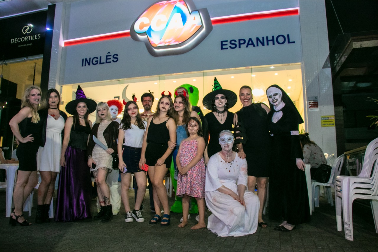 Aconteceu na última quinta-feira (31), a festa de Halloween do novo CCAA Jaraguá do Sul. Este foi o primeiro evento realizado na unidade nova que, por sinal, foi um sucesso. A escola aproveitou a estrutura recém-montada para convidar alunos e pais para celebrar esta data, numa festa que misturou comidas deliciosas e atividades divertidas.