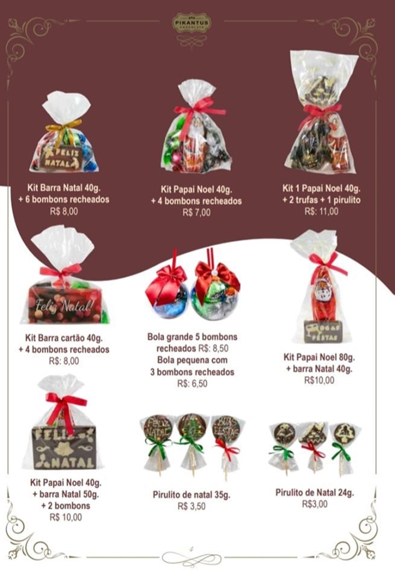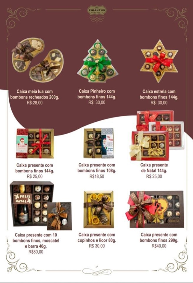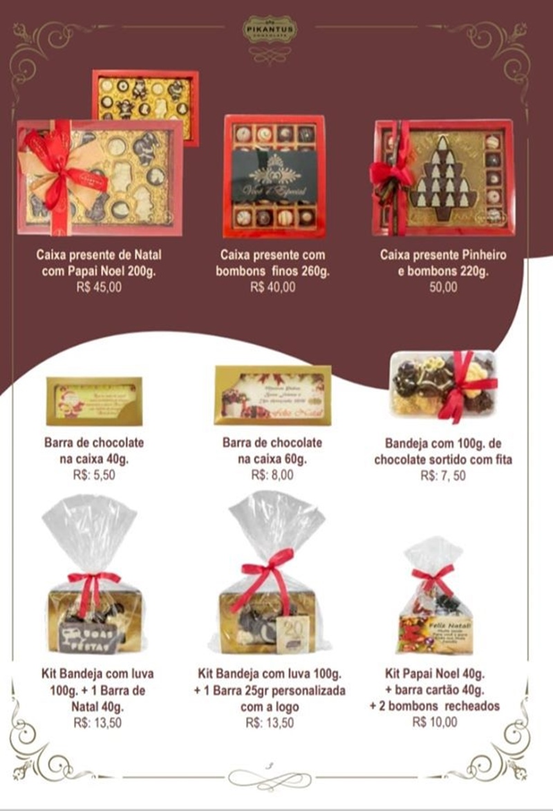 Além destas opções, a Casa do Chocolate conta com mais de 30 artigos de natal para você presentear. Dá uma olhada no catálogo.