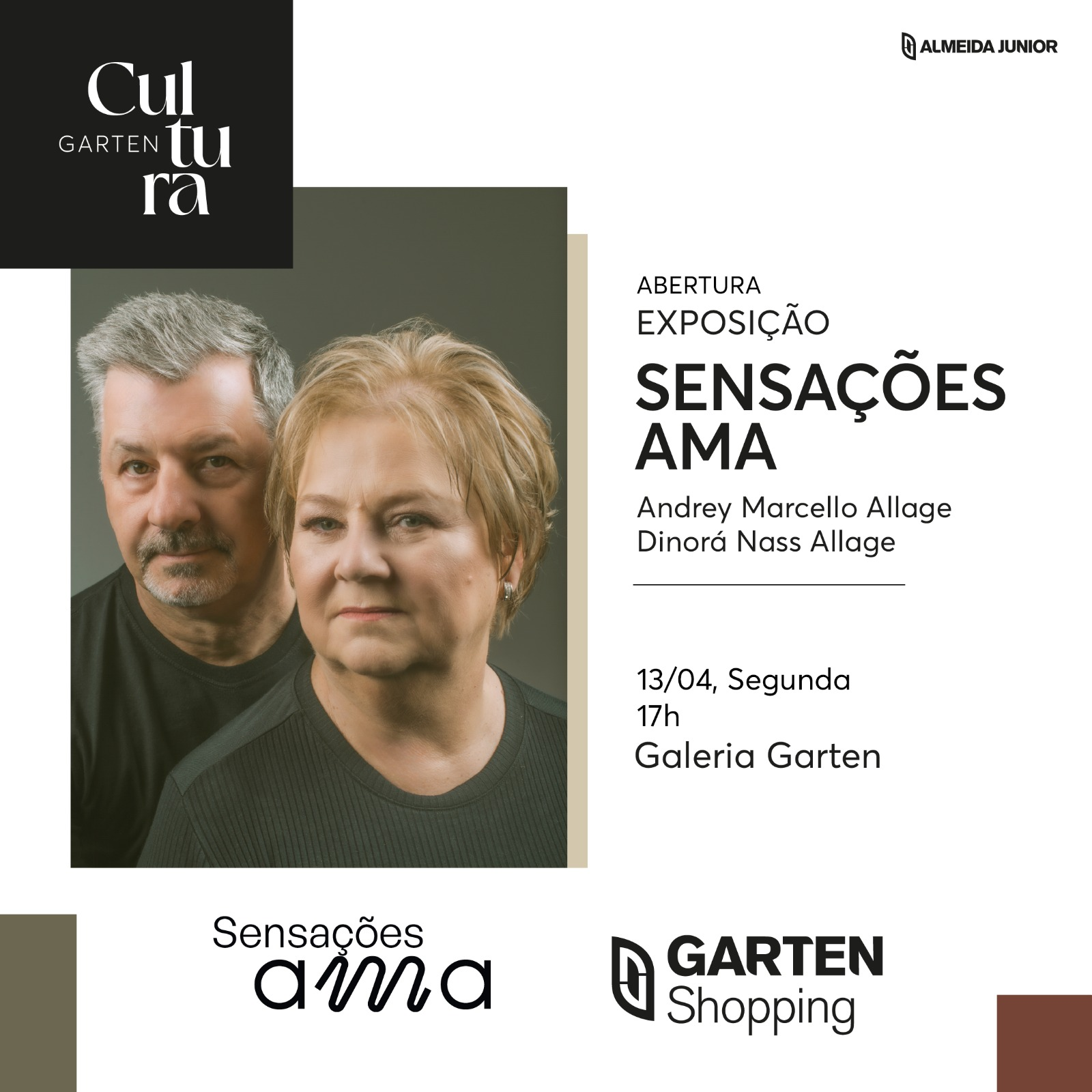A exposição “Sensações AMA” já está aberta para visitação no Garten Shopping. A mostra teve início no dia 11 de abril, e contou com um coquetel exclusivo para convidados na segunda-feira (13). A partir de hoje (14), o público em geral pode conferir gratuitamente a exposição, que segue até o dia 11 de maio na Galeria Garten, em frente à Le Lis.