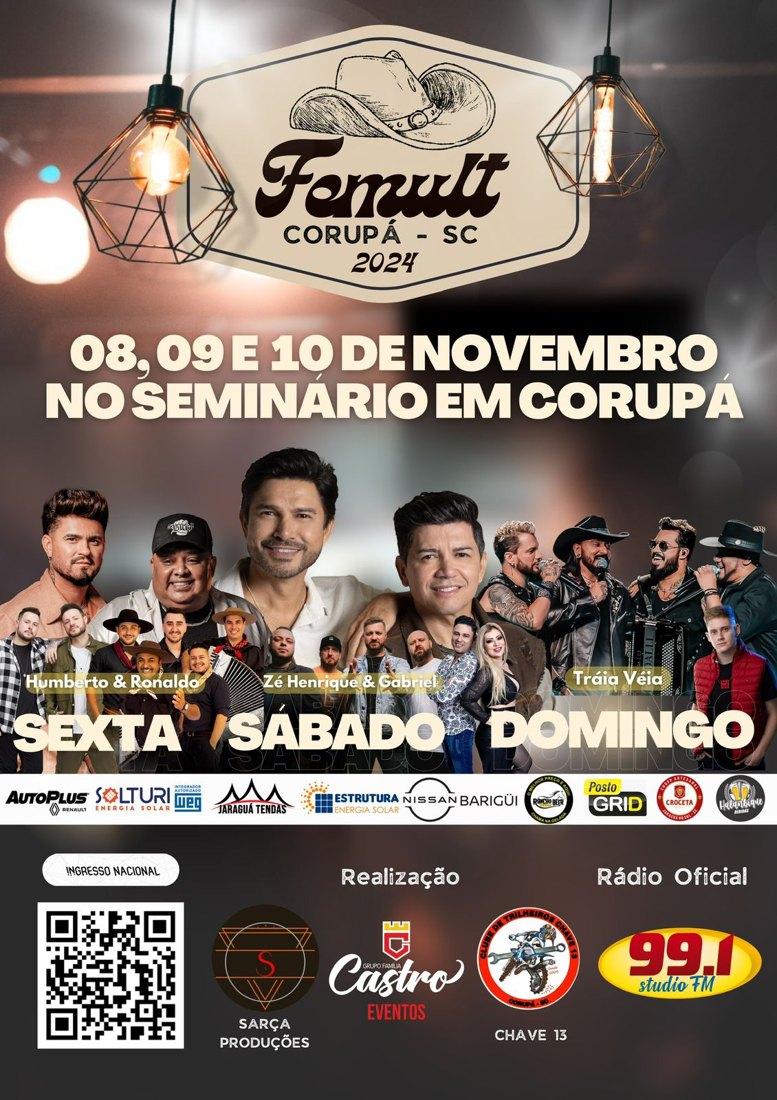 Corupá se prepara para receber o maior evento do ano: a Femult 2024. Serão três dias de muita diversão, música, gastronomia e entretenimento para toda a família. O evento, que promete agitar a cidade, contará com shows de artistas regionais e nacionais, além de uma ampla variedade gastronômica e um parque de diversões para todas as idades.