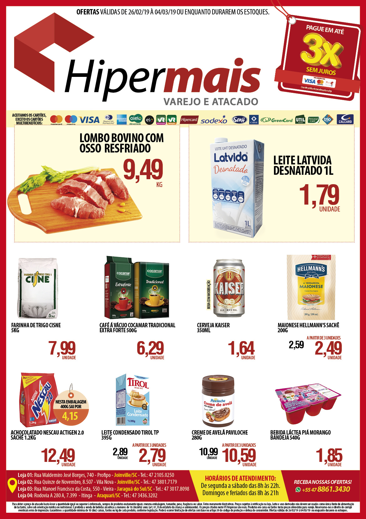 O Hipermais Jaraguá do Sul fica na rua Manoel Francisco da Costa, nº 550, no bairro Vieira. O telefone para contato é (47) 3017-8098. Curta também a página no Facebook e fique por dentro das novidades.
