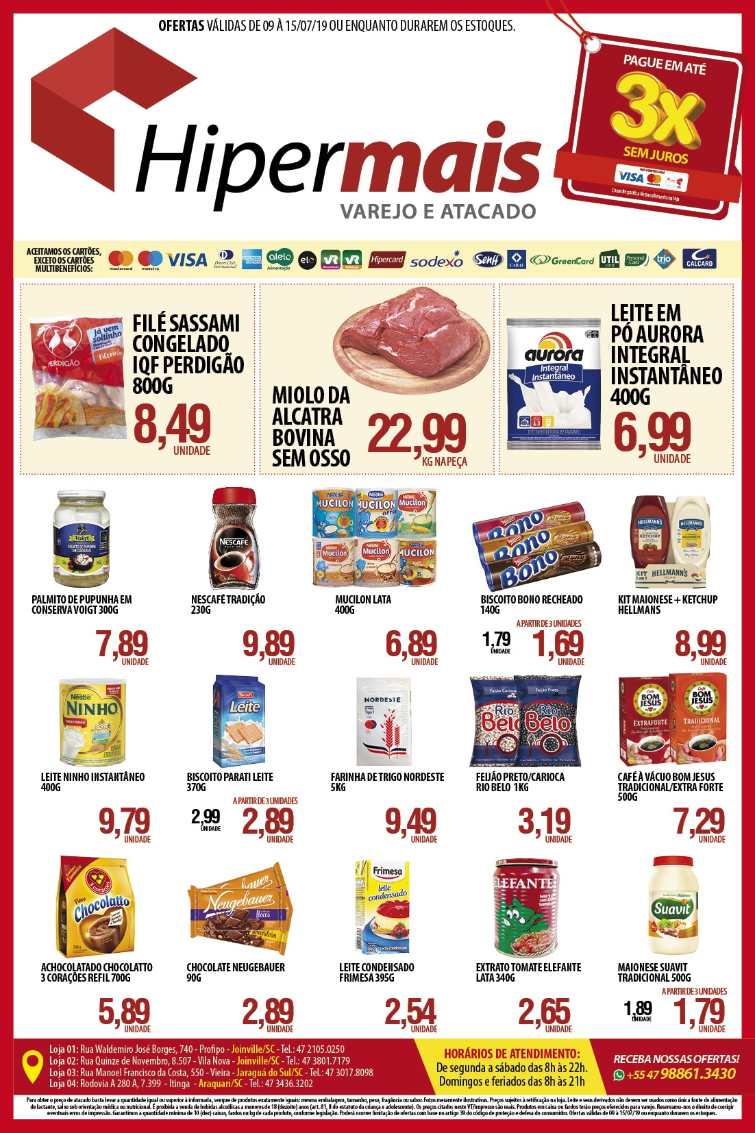 O Hipermais Jaraguá do Sul fica na rua Manoel Francisco da Costa, 550, no bairro Vieira. O telefone para contato é (47) 3017-8098. Curta também a página no Facebook e fique por dentro das novidades.