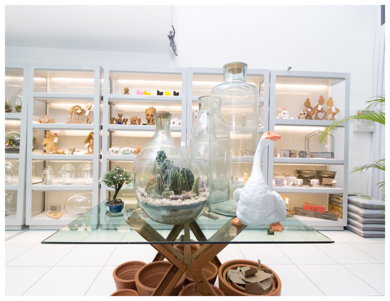 Em maio de 2019, o Dona Dora Atelier deu seu primeiro grande passo e abriu uma loja única. Por mais que o local funcione em um estabelecimento comercial, o ambiente tem mais cara de uma estufa exuberante e diversa, com muitos modelos de terrários, mini jardins e plantas exóticas.