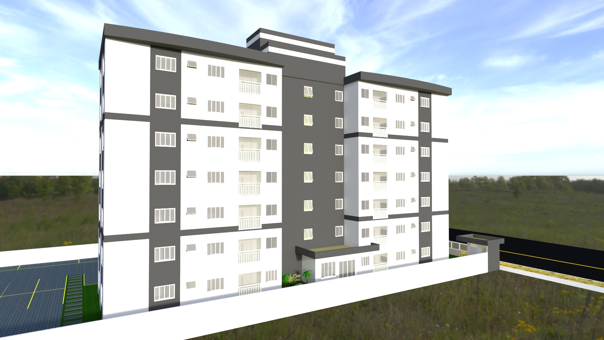 Um dos lançamentos da imobiliária é o primeiro edifício de 7 pavimentos com elevador na cidade, o Residencial Torre de Munique possui plantas com 73,41m² , 75,33m² e 61,00m² todos com vaga de garagem. Sacada com churrasqueira, área de convívio integrada (cozinha, sala de estar e jantar), portal e porteiro eletrônico, ampla área de festas, leitor de gás individual, fino acabamento com piso cerâmico em todos os ambientes, preparação para ar condicionado, banheiro com conjunto sanitário.