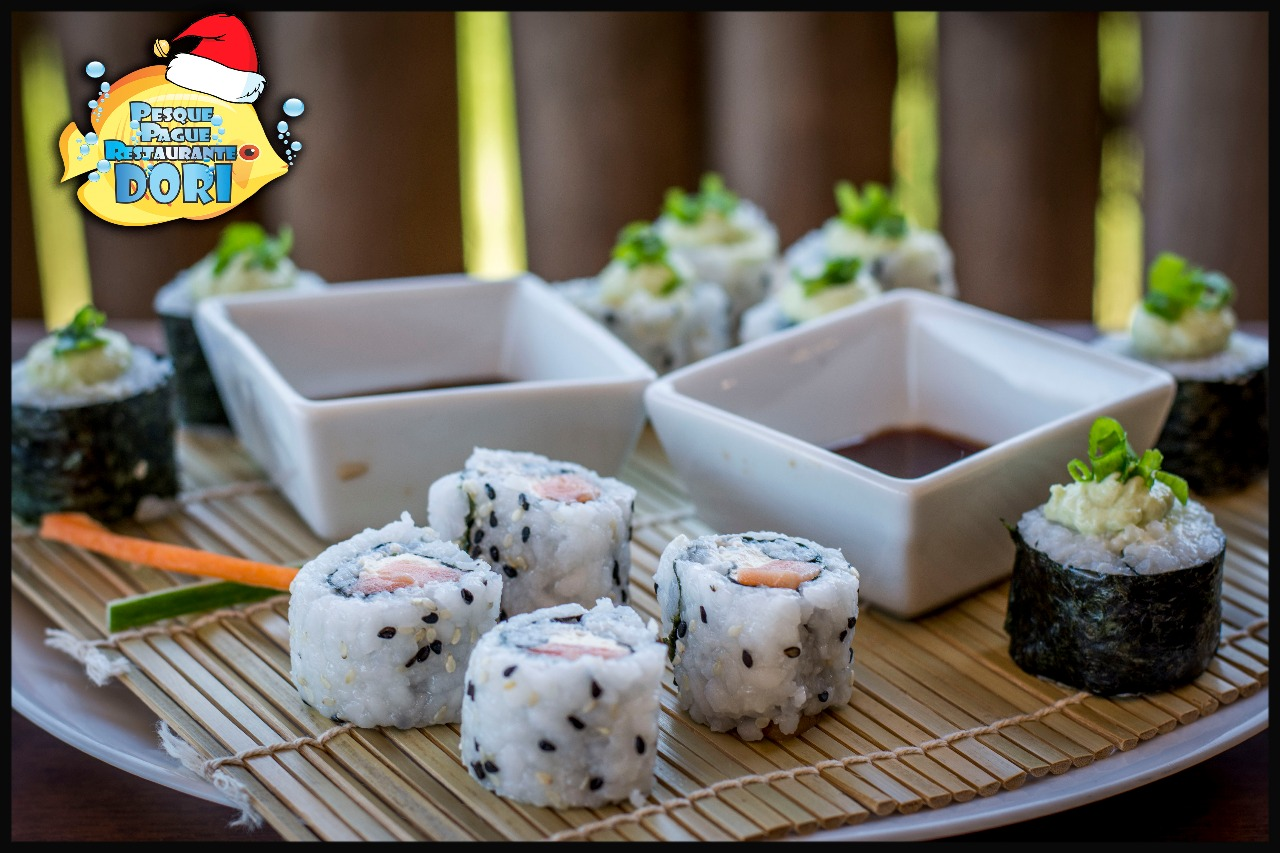 Pesque-pague e Restaurante Dori conta com um amplo cardápio de sushis, e os apaixonados pela iguaria vão encontrar pratos como Hossomaki, Uramaki, Hot Roll, Temaki e Sashimi. Tudo preparado com o jeitinho da casa que todo mundo gosta, para que a experiência pelo paladar seja sempre inesquecível.