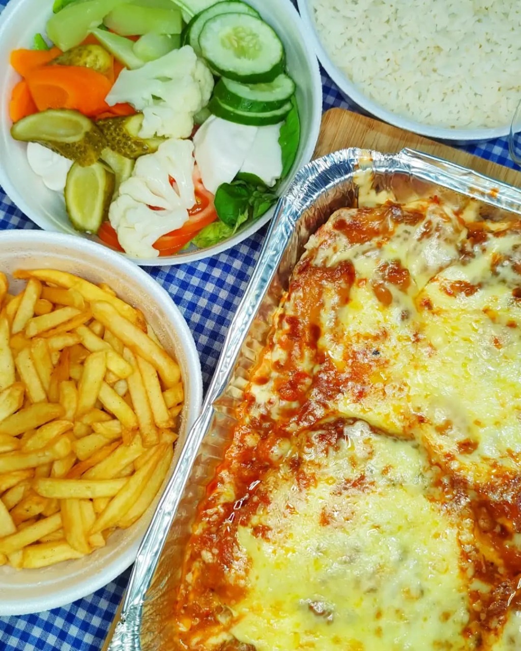 A parmegiana é um dos diferenciais da casa. Porções individuais ou maiores de frango e bife acompanham batatas fritas, arroz e salada. Já os calzones também são amados pela clientela: calabresa, camarão e peru são alguns dos sabores.