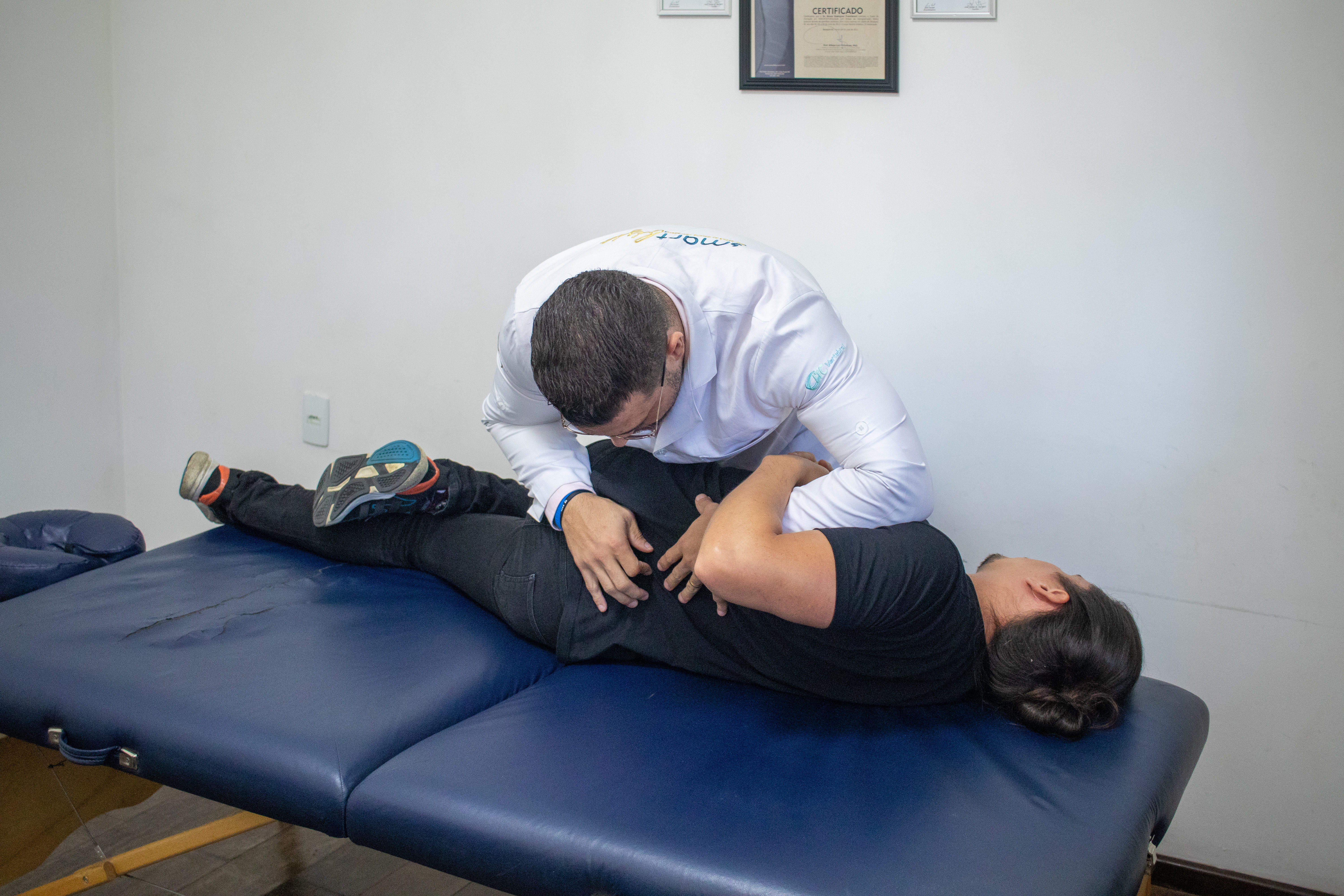 Avaliação – primeiro contato com o paciente. O fisioterapeuta avalia todas as características do quadro e utiliza inteligência artificial para o alinhamento mais assertivo do diagnóstico e consequente escolha da abordagem de tratamento.
