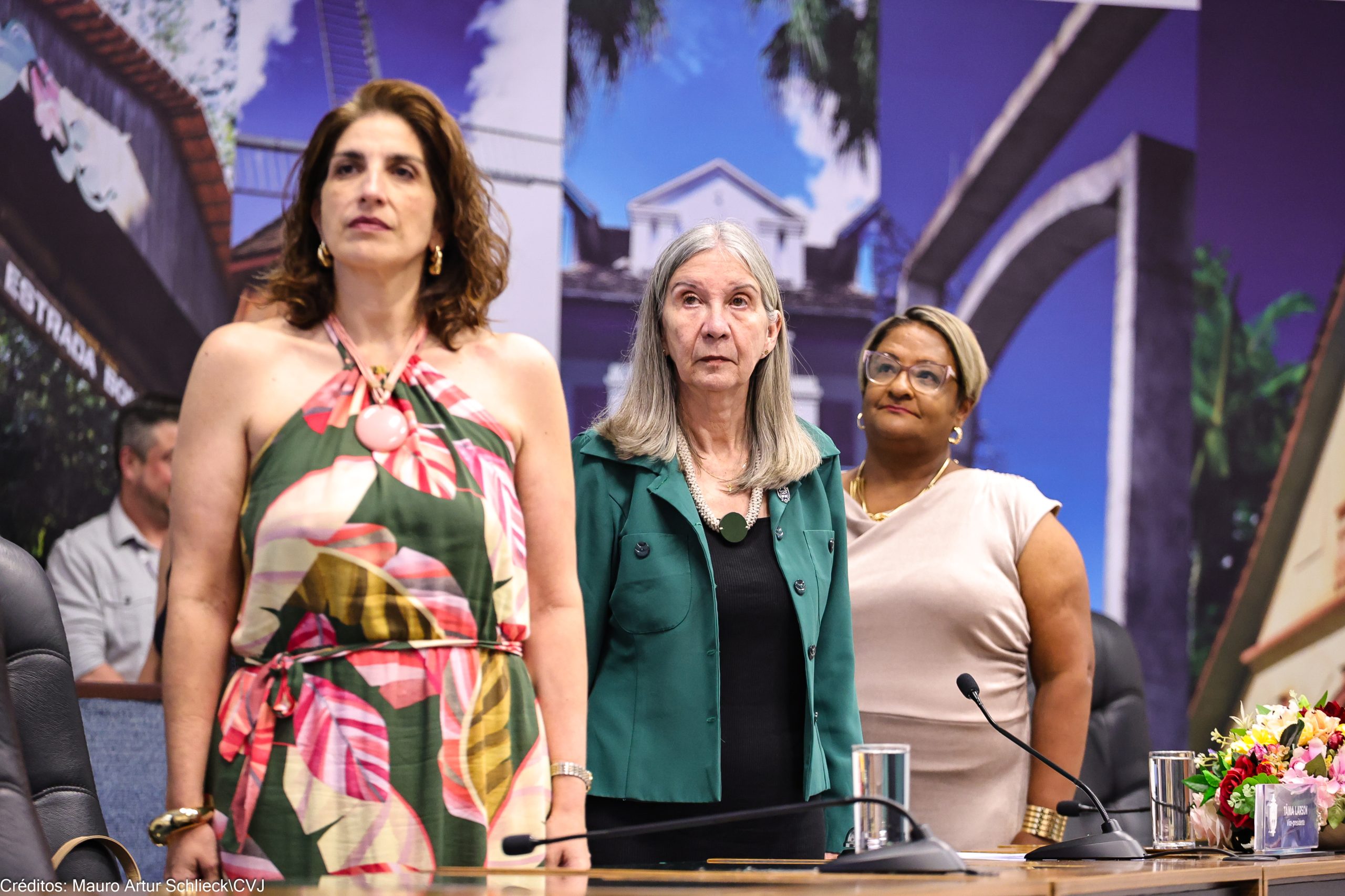 A CVJ concedeu o Título de Cidadã Benemérita de Joinville à ativista na área da saúde Cleia Aparecida Clemente Giosole, em sessão solene, nesta terça-feira (11), por requerimento da vice-presidente da Mesa Diretora, vereadora Tânia Larson (União Brasil).