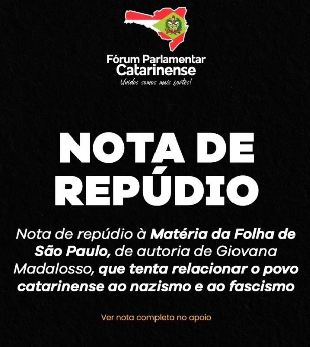 Fórum Parlamentar Catarinense emite nota de repúdio a texto associando estado ao nazismo