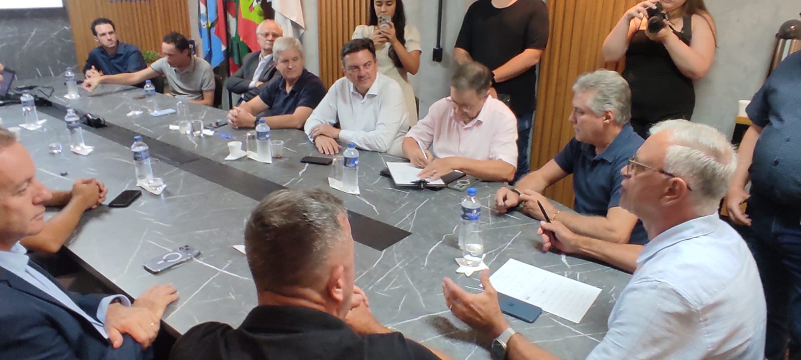 Durante a reunião, foram debatidos temas como a regionalização do sistema de abastecimento de água dos municípios. O prefeito de Guaramirim e primeiro vice-presidente da Amvali, Adriano Marcel Zimmermann, solicitou apoio dos parlamentares presentes, destacando que o assunto é estratégico para o desenvolvimento regional.