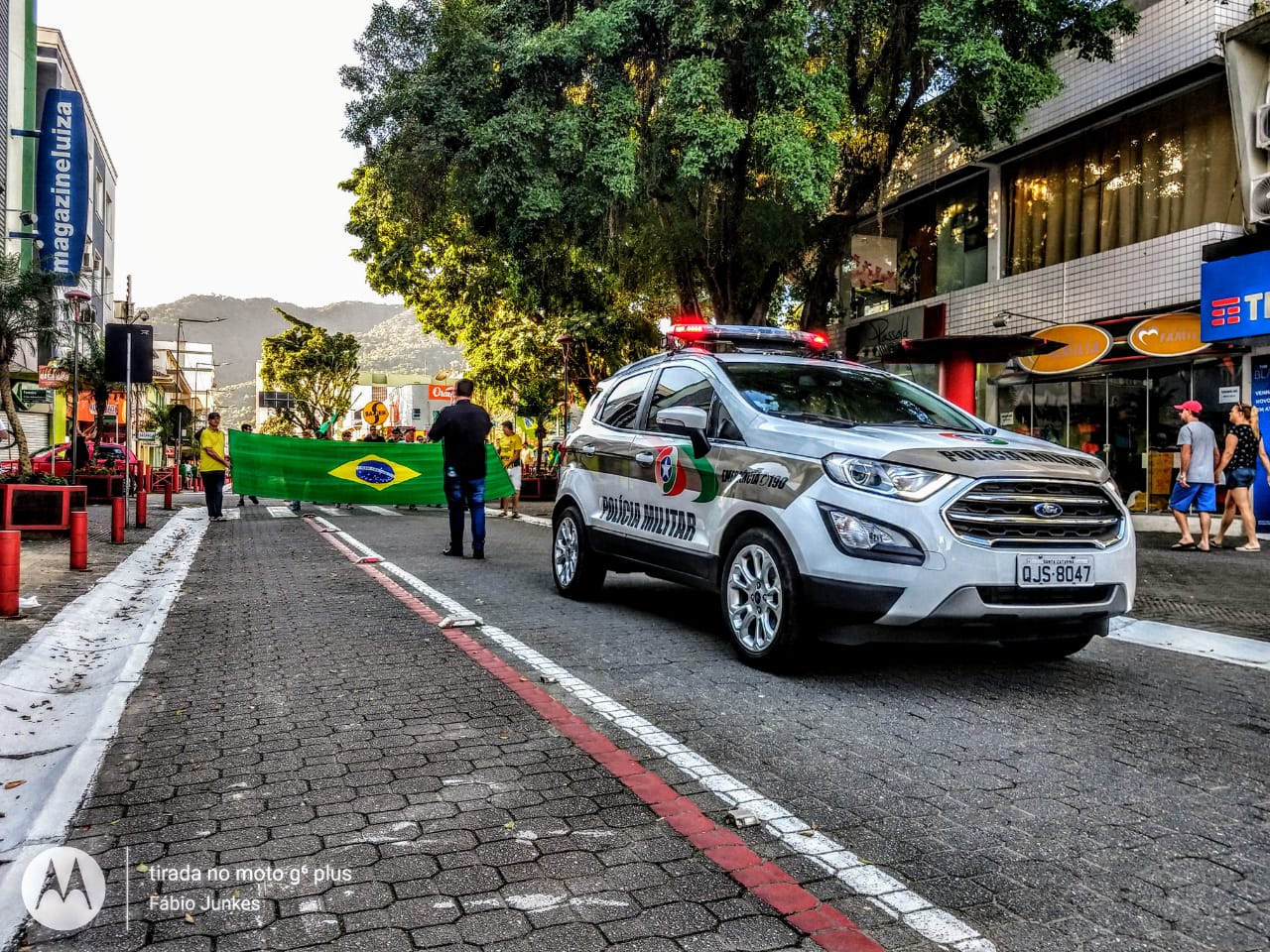 Apesar do buzinaço e do trio elétrico, o protesto foi tranquilo em Jaraguá e durou até o final da tarde.