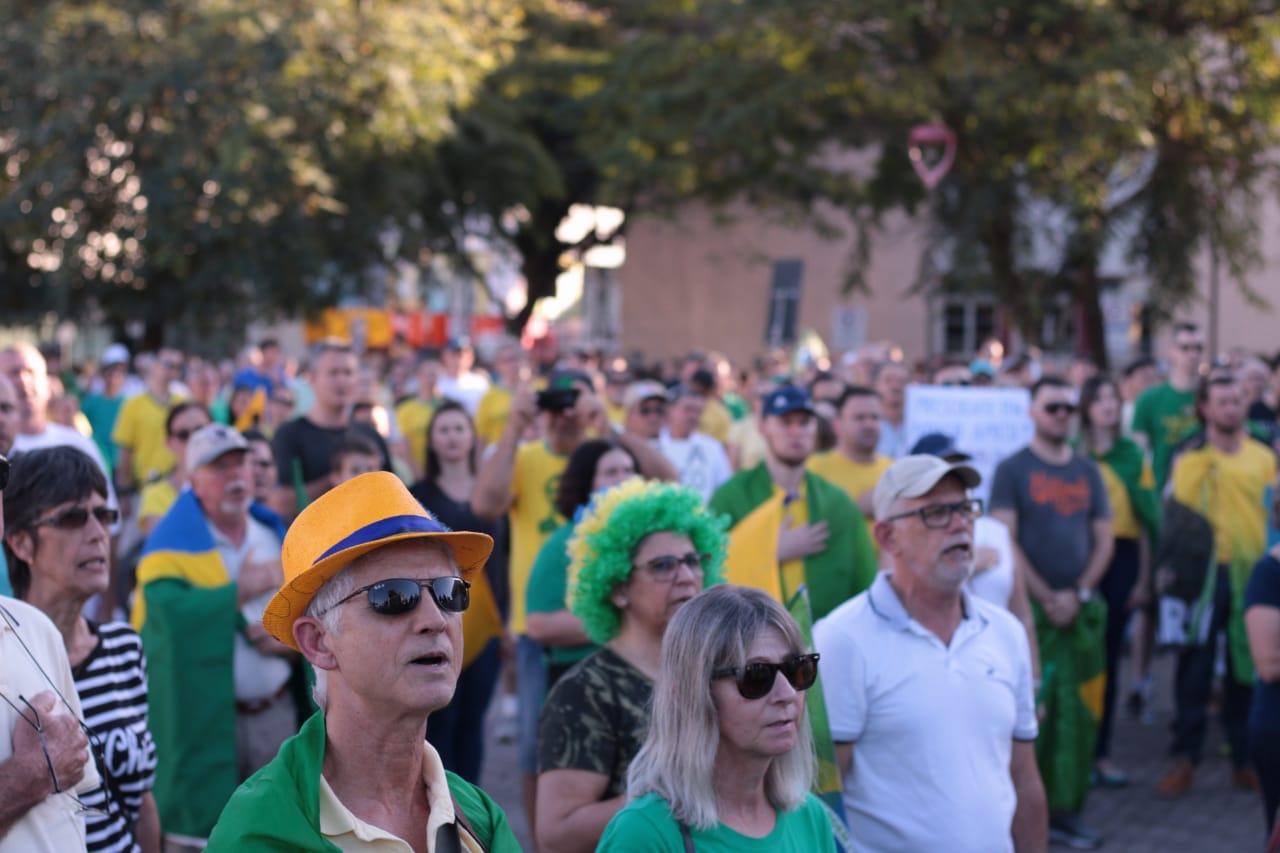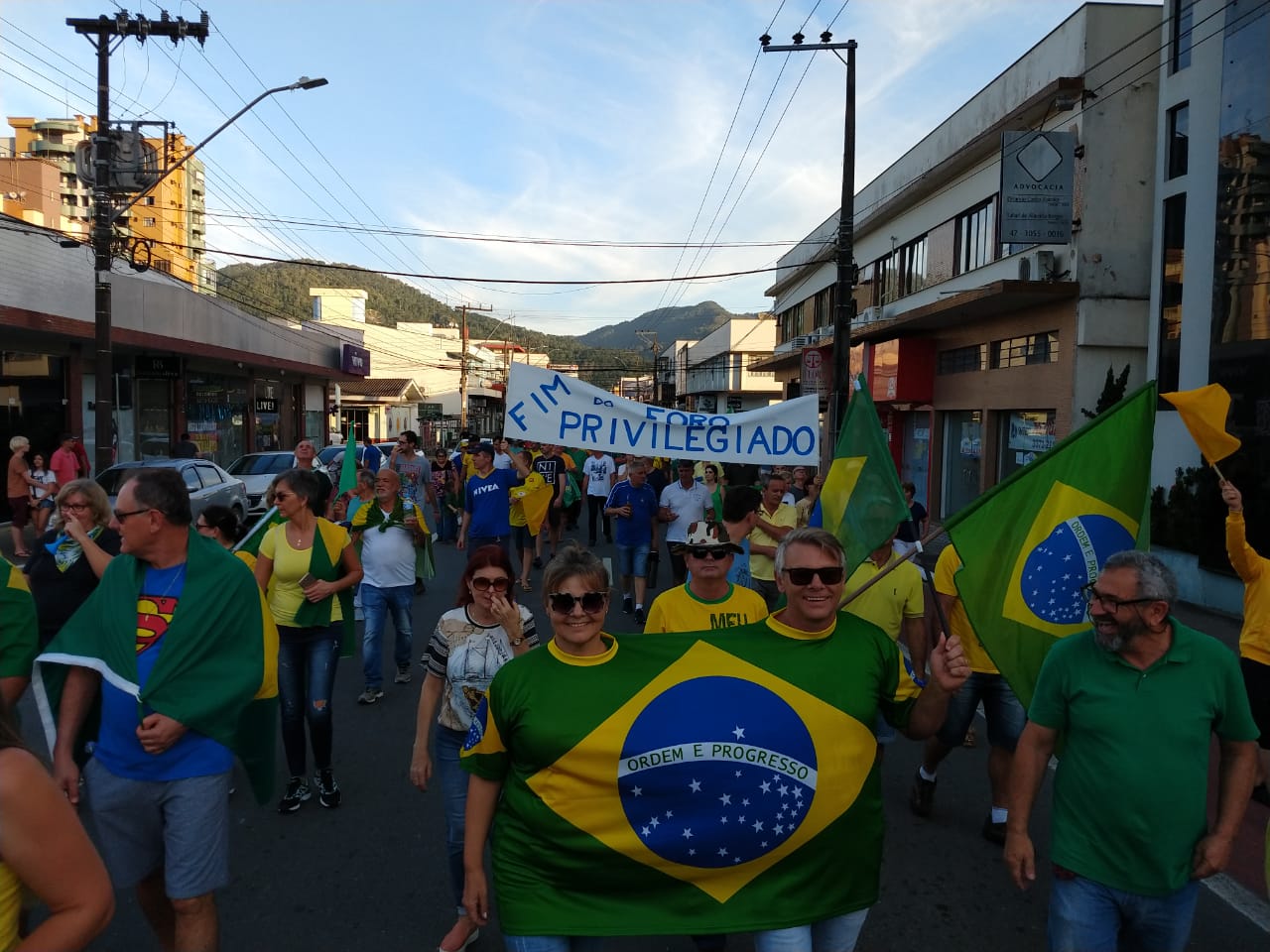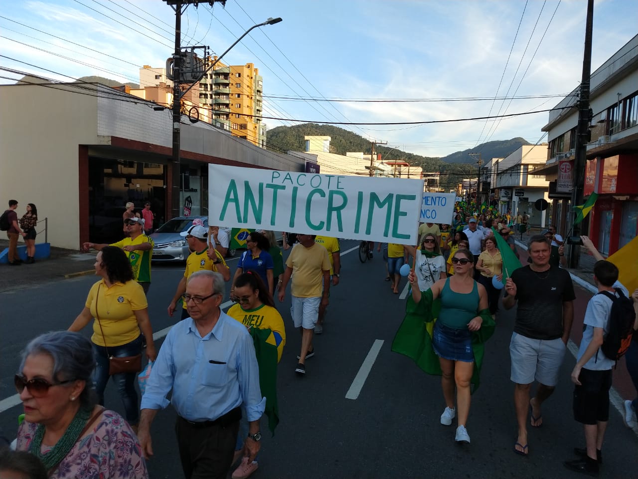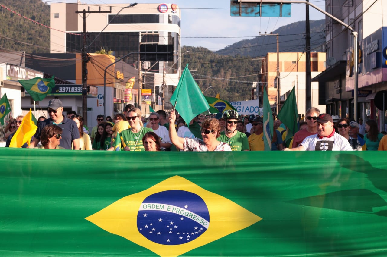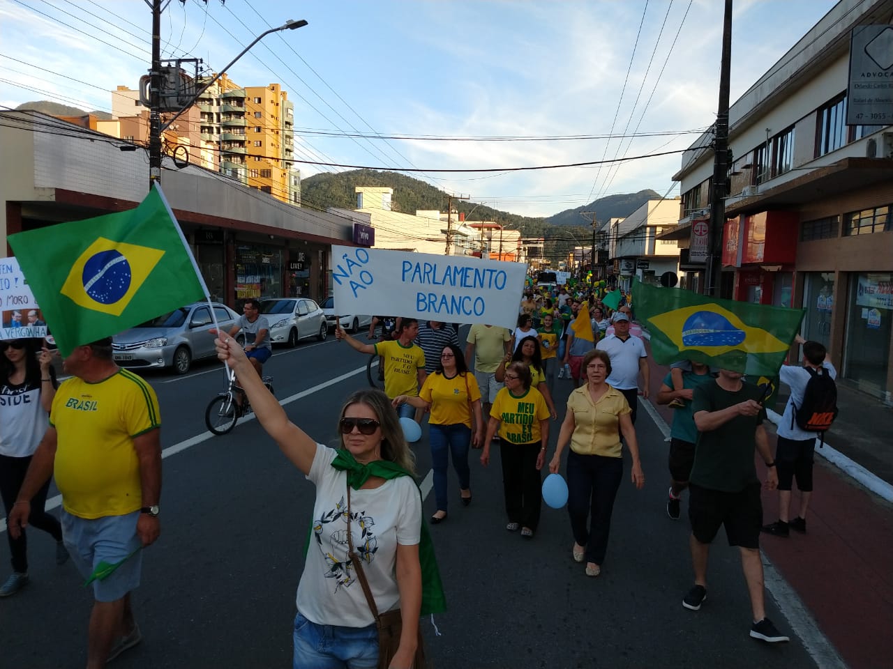 As ruas do Centro de Jaraguá do Sul ficaram lotadas com um colorido de verde e amarelo, neste domingo (30). Milhares de pessoas aderiam aos chamamentos feitos nas redes sociais pelos movimentos Vem Pra Rua e Brasil Livre e manifestaram apoio ao Governo Bolsonaro, à reforma da Previdência, da Lava Jato e de pacote anticrime pelo Brasil, a Operação Lava Jato, pacote anticrime e ao ministro Sérgio Moro.