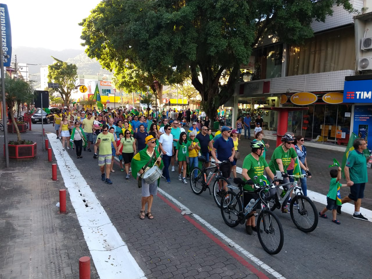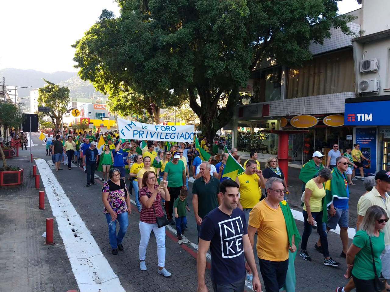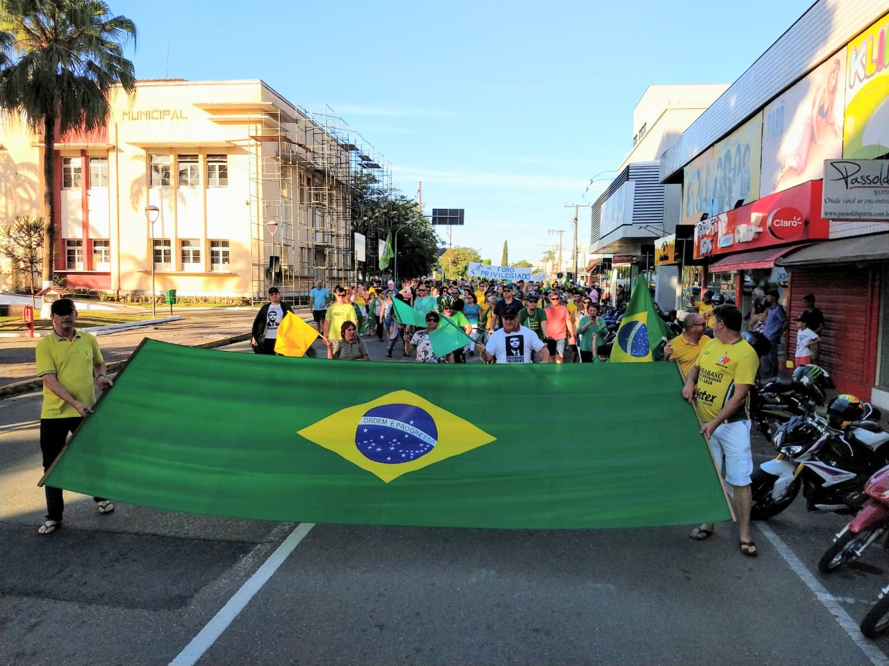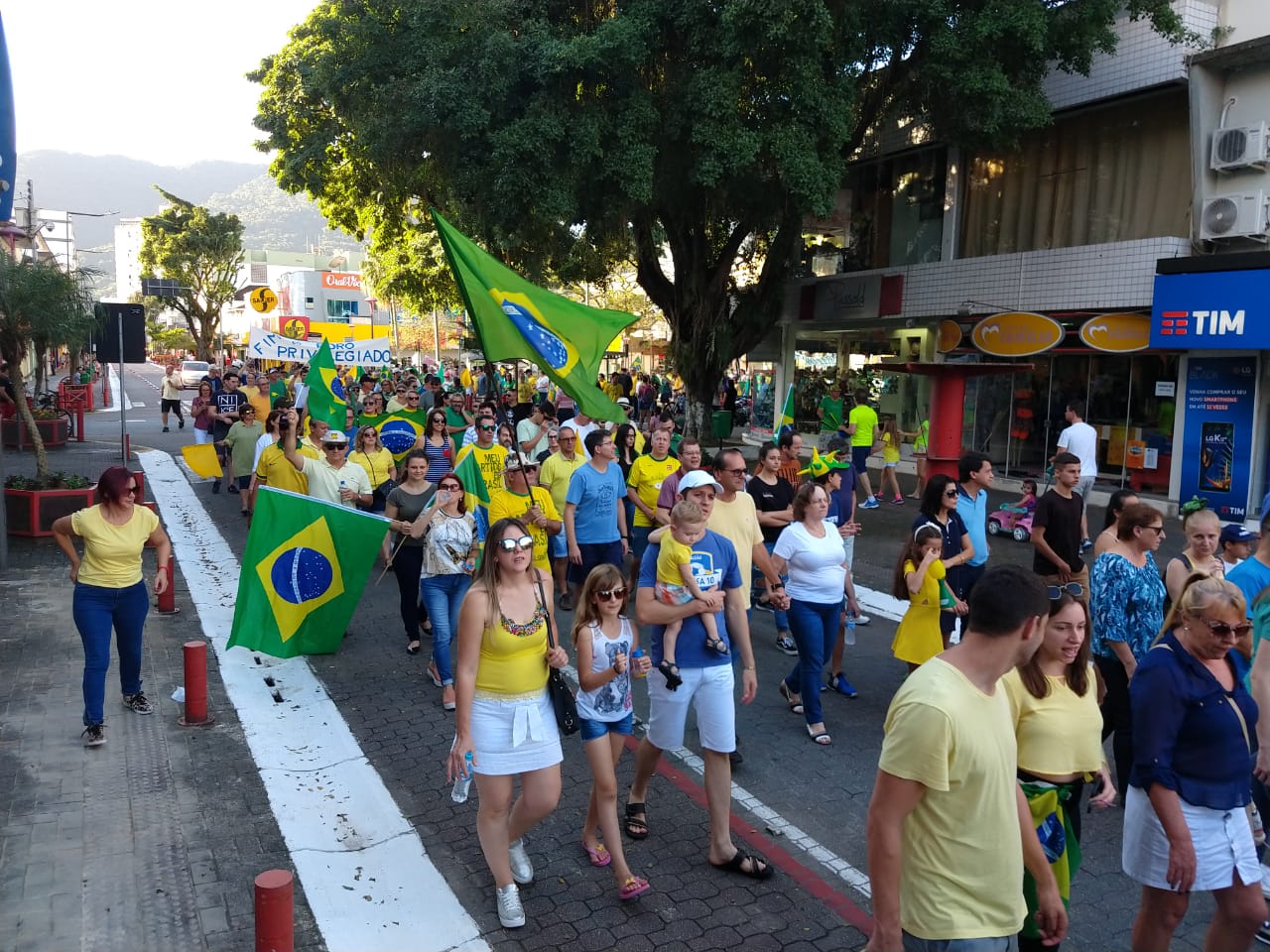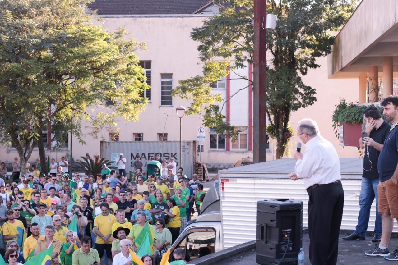 As ruas do Centro de Jaraguá do Sul ficaram lotadas com um colorido de verde e amarelo, neste domingo (30). Milhares de pessoas aderiam aos chamamentos feitos nas redes sociais pelos movimentos Vem Pra Rua e Brasil Livre e manifestaram apoio ao Governo Bolsonaro, à reforma da Previdência, da Lava Jato e de pacote anticrime pelo Brasil, a Operação Lava Jato, pacote anticrime e ao ministro Sérgio Moro.
