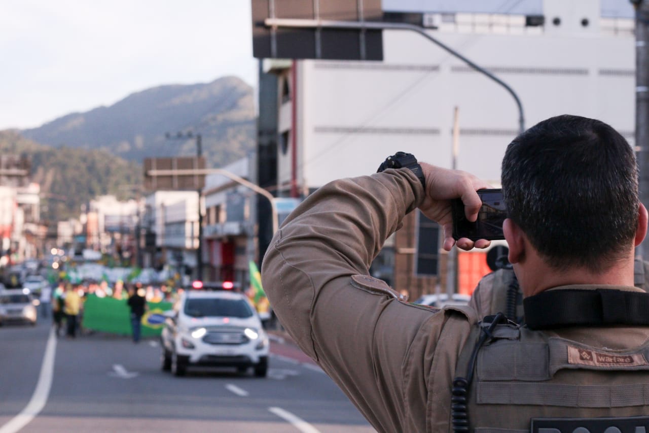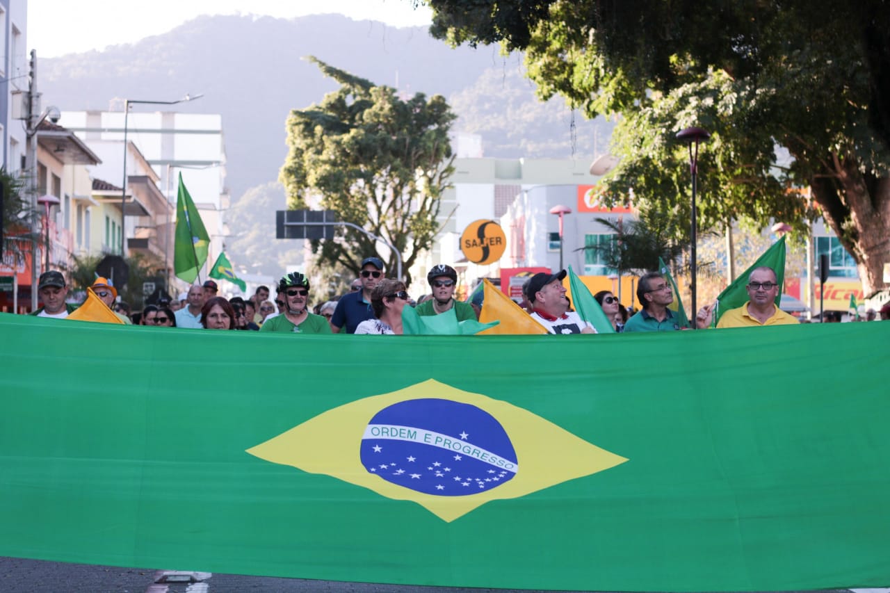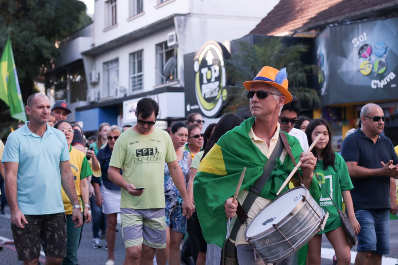 Protestos: em Joinville manifestantes marcham até o Fórum e cantam Hino Nacional