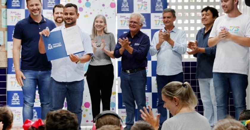 A Prefeitura de Joinville, por meio da Secretaria de Educação, assinou a Ordem de Serviço que autoriza o início das obras de construção de uma quadra poliesportiva coberta na Escola Municipal Professora Senhorinha Soares, no bairro Vila Nova. O evento ocorreu na tarde desta quarta-feira (11), como parte da programação de aniversário de 175 anos de Joinville.
