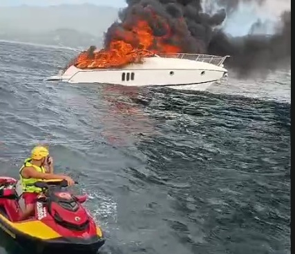Vídeo: Lancha pega fogo em Florianópolis e Bombeiros resgatam vítimas em alto mar