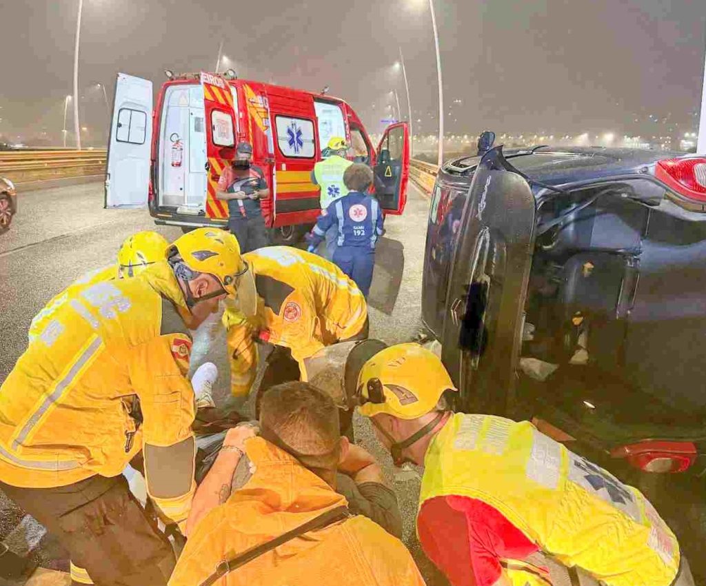 Homem é retirado pelo porta-malas após capotar carro em ponte de Florianópolis