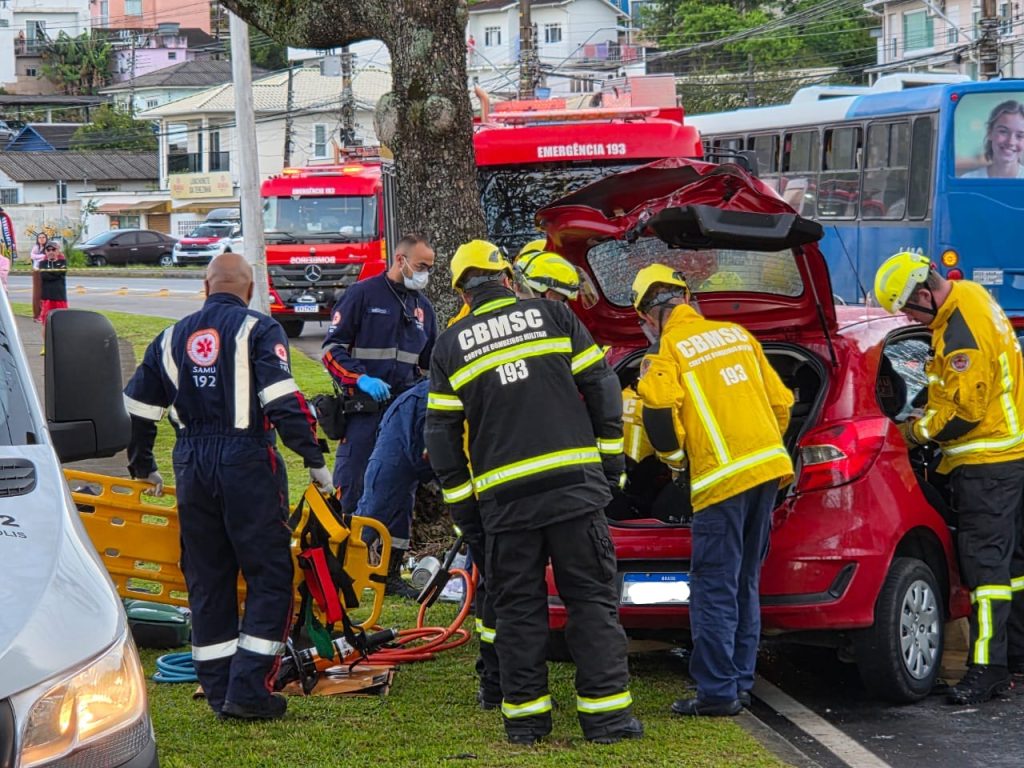 Dois homens morrem em colisão entre carro e ônibus em Florianópolis.