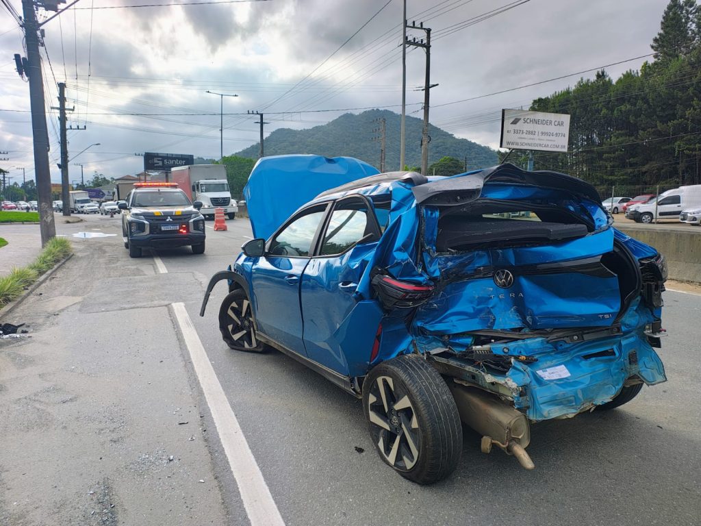 Colisão entre dois carros e caminhão complica trânsito na BR-280 em Guaramirim