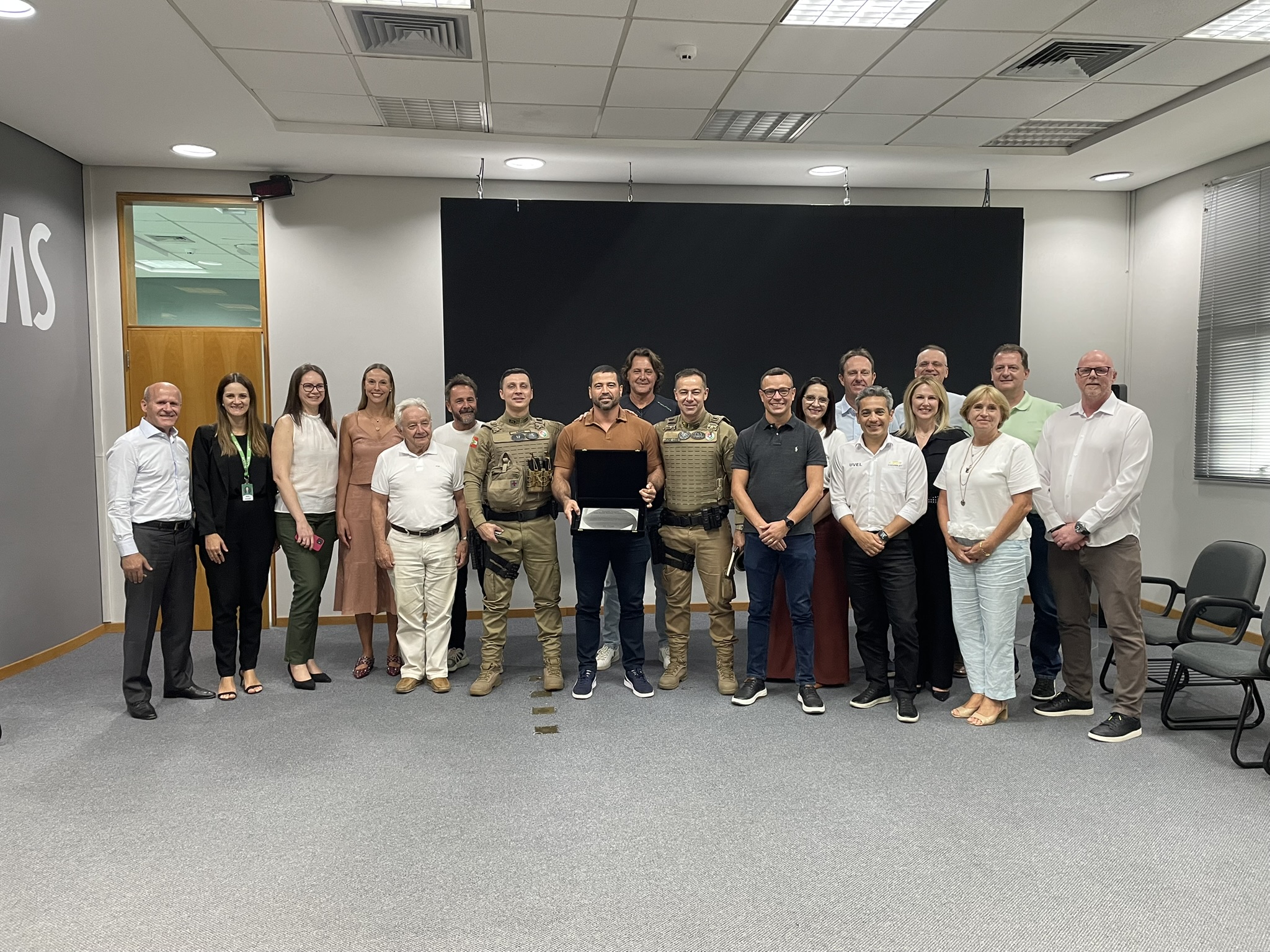 A cerimônia ocorreu no Centro Empresarial de Jaraguá do Sul (Cejas) e contou com a presença de ex-presidentes da entidade que atualmente integram o Conselho Superior. O encontro simbolizou o reconhecimento do setor produtivo à atuação conjunta com as forças de segurança no município e na região.