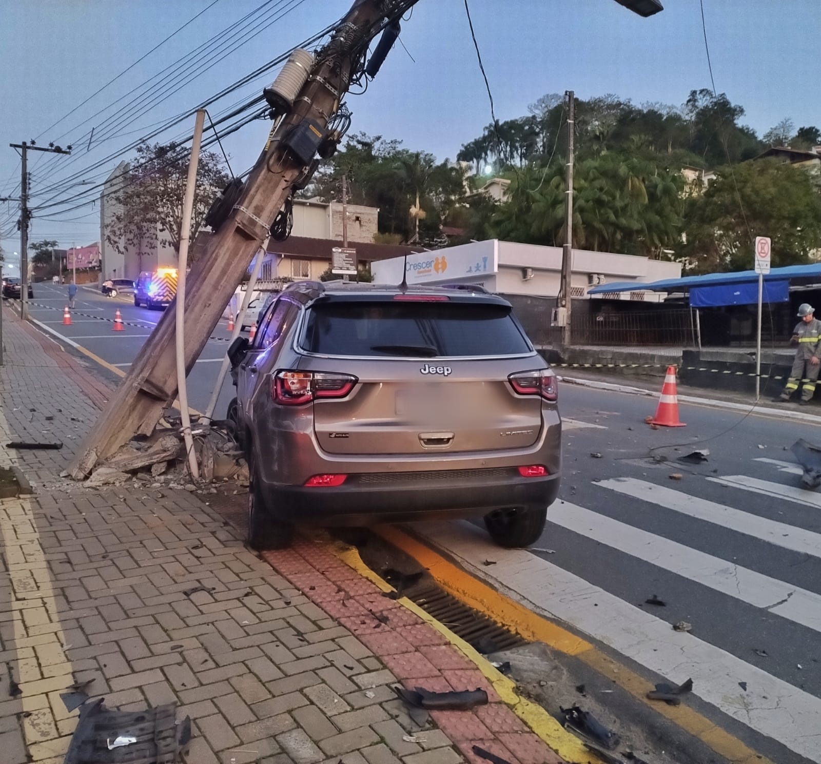 Após o impacto, o Compass acabou atingindo um poste. Cerca de 120 unidades consumidoras registraram falta de energia.