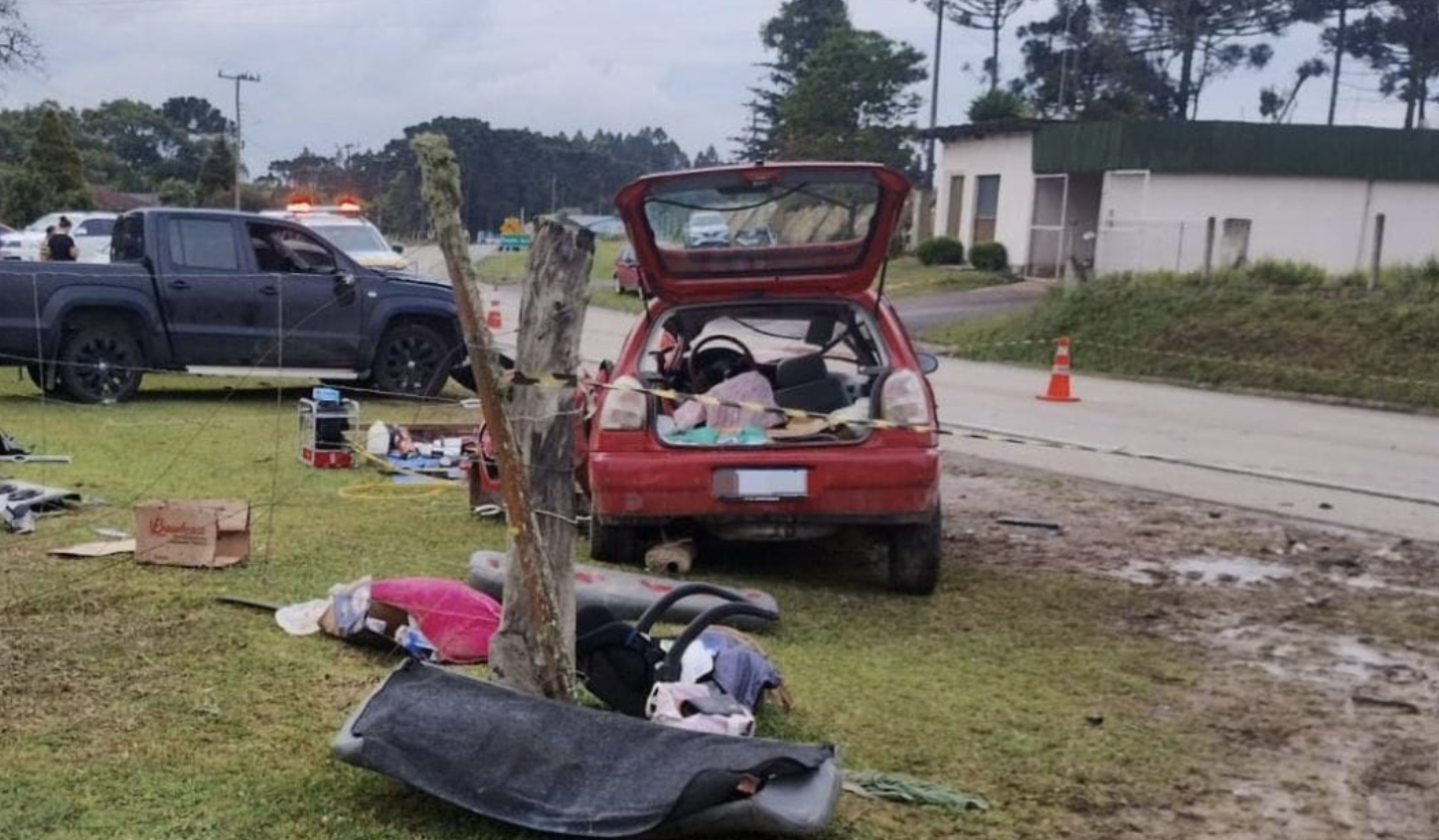 O acidente ocorreu no Km 87,300 da SC-477 e envolveu dois veículos: um Volkswagen Gol, onde estava a família, e uma caminhonete Amarok 4×4.