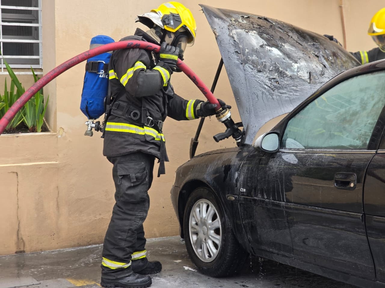 Ao chegarem ao local, os bombeiros constataram que as chamas estavam confinadas ao compartimento do motor do automóvel. A guarnição agiu rapidamente, realizando o combate direto e o rescaldo para evitar que o fogo se propagasse para o restante da estrutura do veículo.