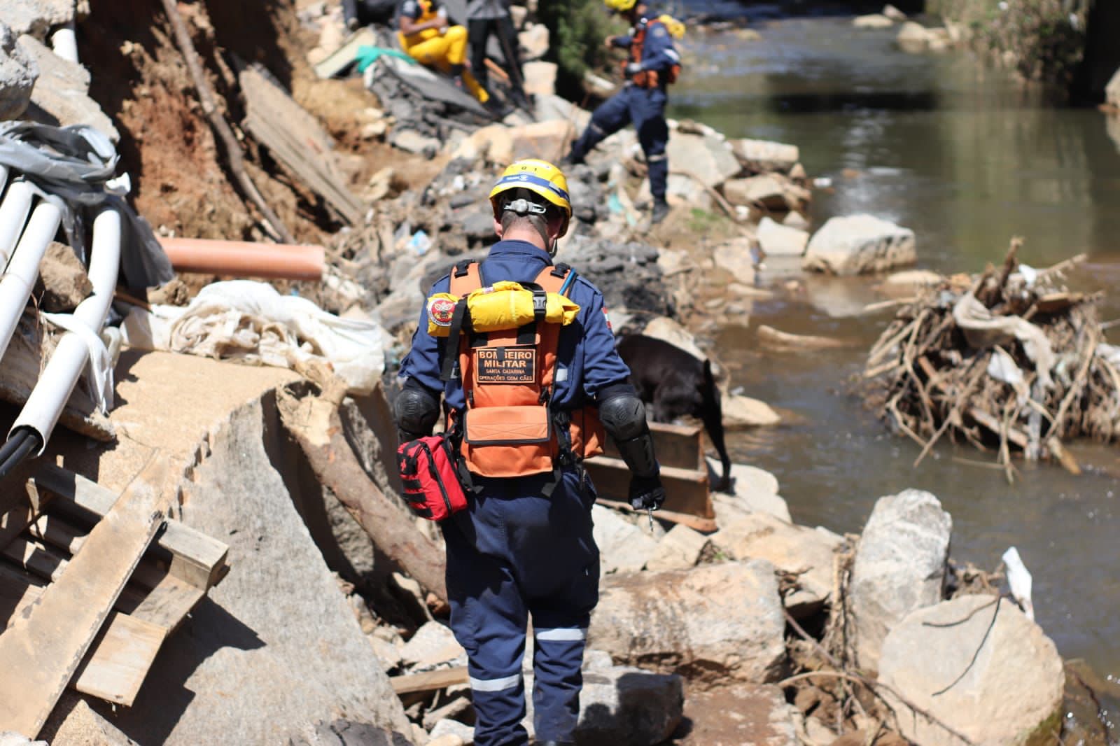 Na manhã desta segunda-feira, a equipe do Corpo de Bombeiros Militar de Santa Catarina (CBMSC), em Petrópolis, no Rio de Janeiro, foi acionada para buscas de vítimas que estavam em dois ônibus que caíram em um rio e foram levadas pela correnteza, na rua Washington Luiz.