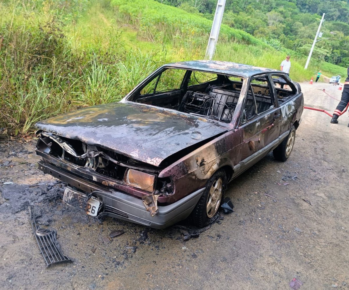 No mesmo horário, também às 17h57, e na rua 03 de Outubro, no bairro Braço do Sul, as equipes atenderam um incêndio em veículo. No local, o automóvel já estava totalmente tomado pelas chamas.