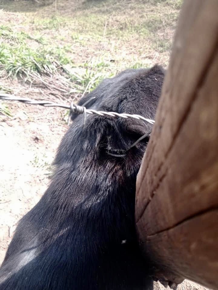 Ao chegar perto do animal, os bombeiros constataram de que ele havia sido amarrado em um cabo de aço, feito uma laçada, tipo forca no pescoço.