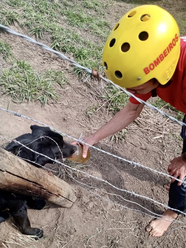 “Ele estava desesperado por água. Improvisamos um recipiente e oferecemos água. Logo após, realizamos a soltura, com todo cuidado, para preservar o animal. Ele foi transportado até a serralheria, onde, de imediato, foi alimentado e adotado pelos trabalhadores do local, ficando em segurança”.