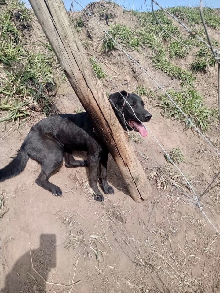 Os Bombeiros Voluntários de Jaguaruna salvaram um cão, abandonado e preso para morrer, em um local bastante ermo, do outro lado de um rio, na localidade de Olho D’água.