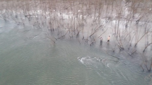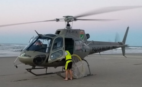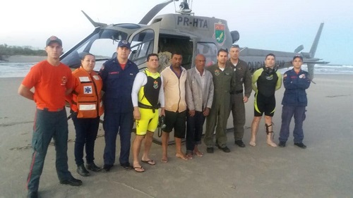 Dois homens que ficaram ilhados na margem norte do rio Saí Mirim foram resgatados com apoio do helicóptero Águia no fim da tarde de domingo. Os colegas afirmaram que o terceiro homem foi puxado pela correnteza. O último contato visual teria ocorrido próximo de uma demarcação, de bandeira preta, que sinaliza a entrada e saída de embarcações do rio ao mar.