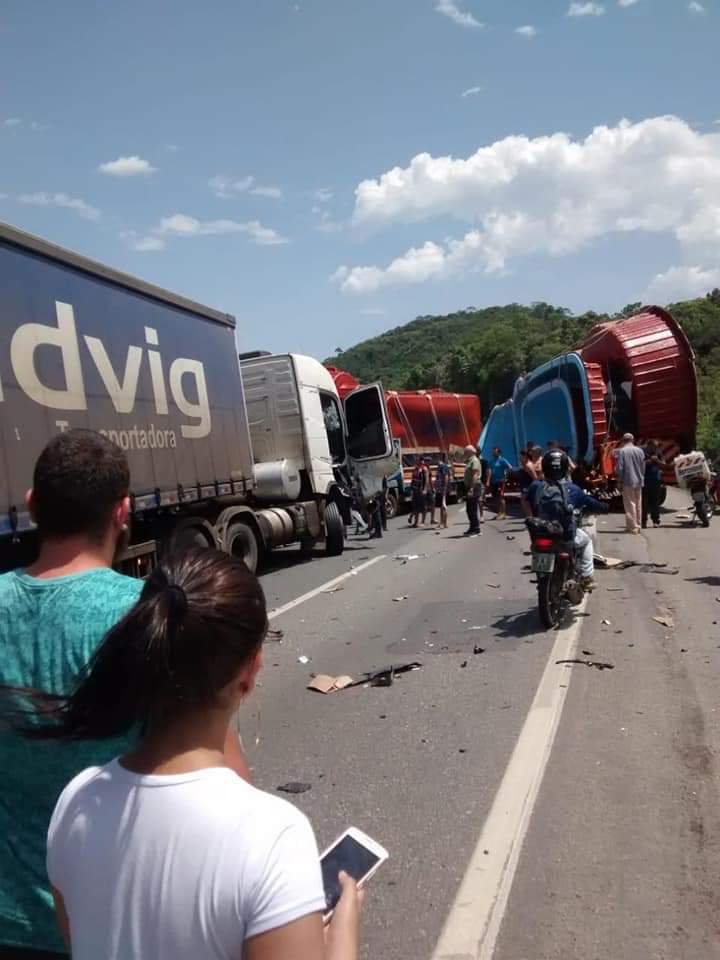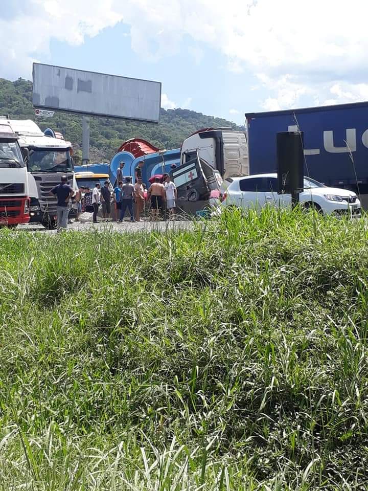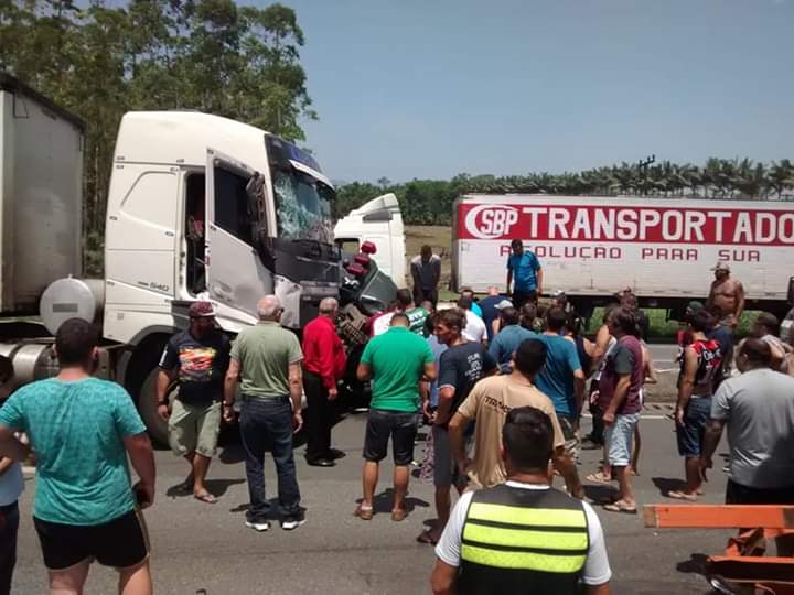 Na tarde desta quarta-feira (12), um acidente foi registrado no km 21 da BR-101. Um caminhão carregado com piscinas teria tido um pneu furado ficando em L na pista, colidindo contra uma viatura de saúde do exército que na sequência foi prensado por outro caminhão. Na viatura estavam duas pessoas, uma delas não se feriu e outra foi socorrida pela equipe da autopista.