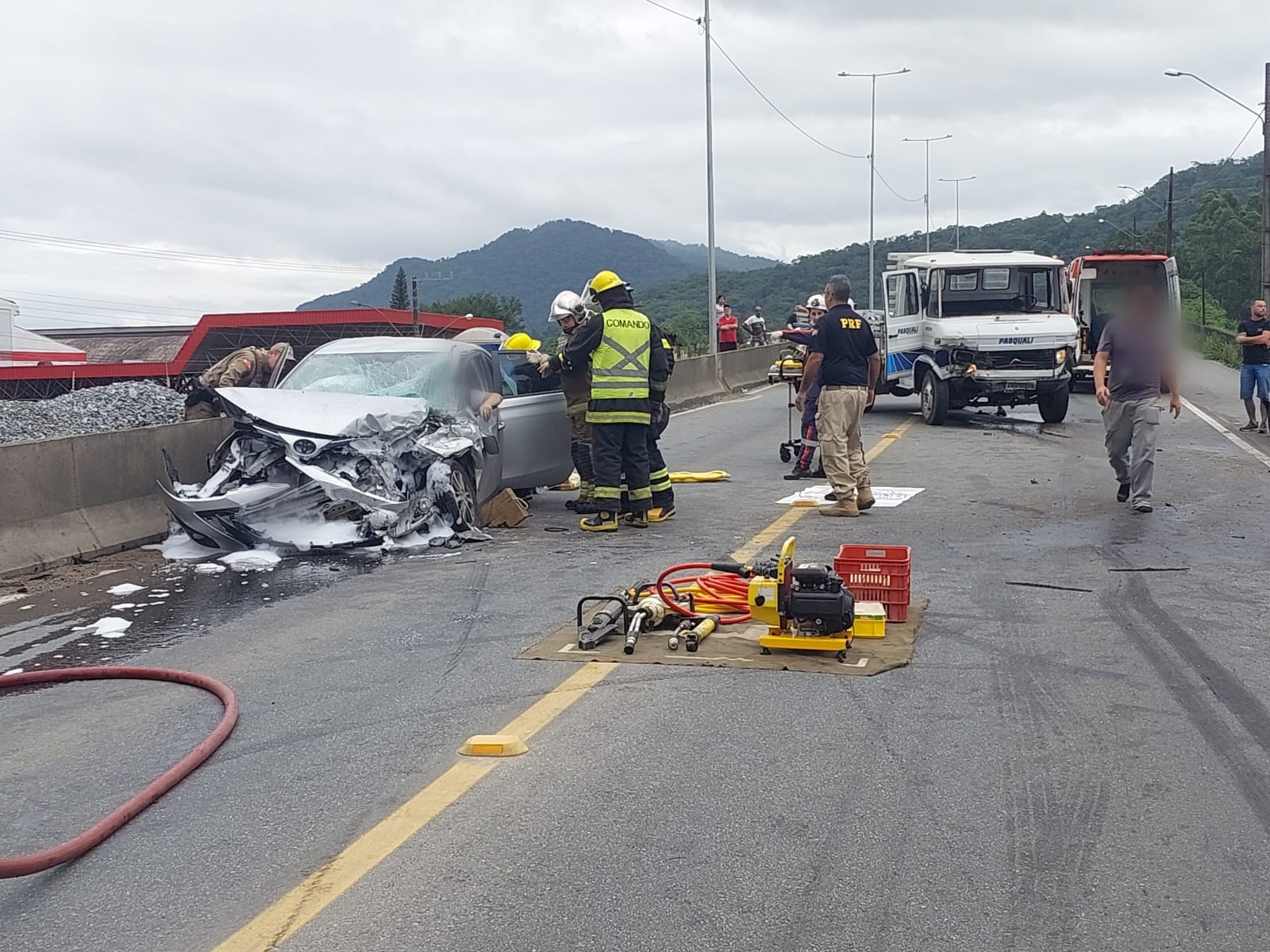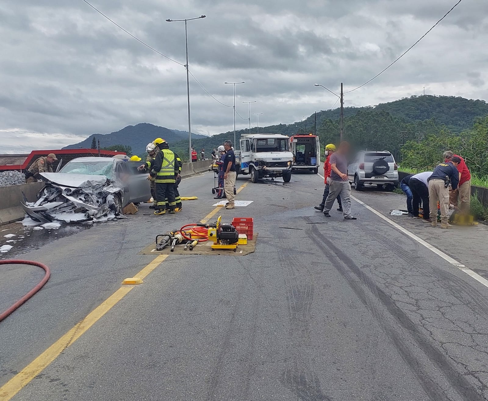 Equipes de Guaramirim e Jaraguá do Sul dos bombeiros voluntários e do Samu (Serviço de Atendimento Móvel de Urgência) foram acionados e estão no local atendendo seis vítimas.