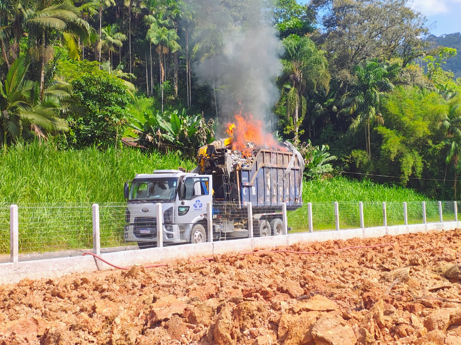 Um caminhão pegou fogo no início da tarde desta quinta-feira (4) após atingir uma fiação baixa na Rua Therezina Ferrazza, no Tifa Monos, em Jaraguá do Sul. A ocorrência foi registrada por volta das 14h55.