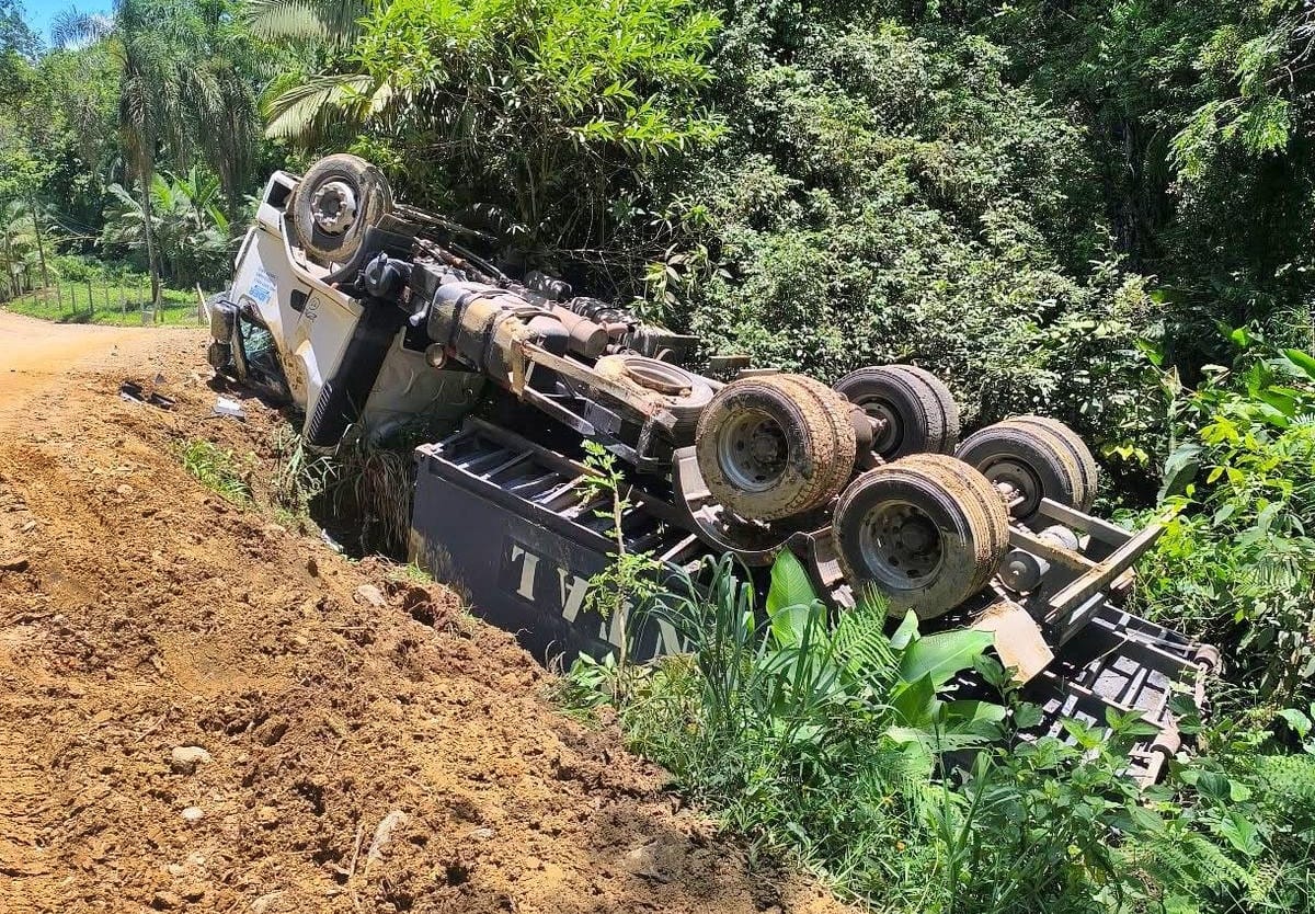 O acidente envolveu um caminhão Volvo 270, com placas de Nova Trento. Conforme informações apuradas no local, o veículo saiu da pista e acabou capotando.