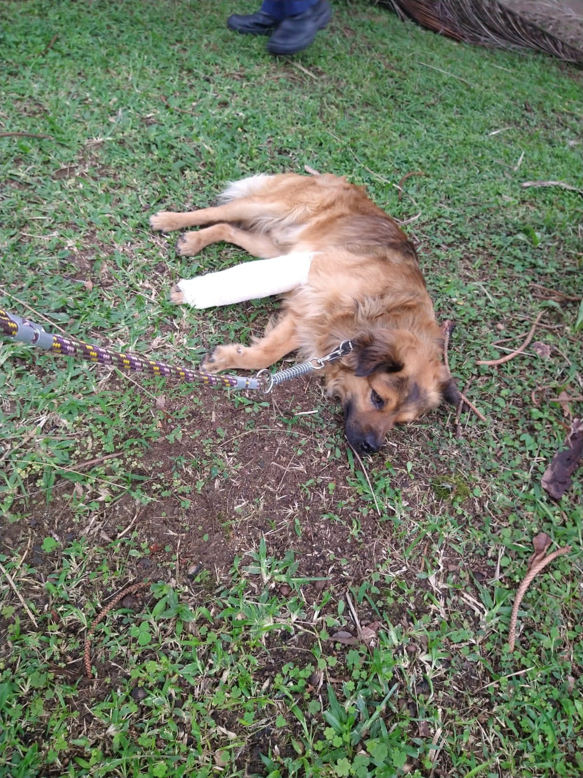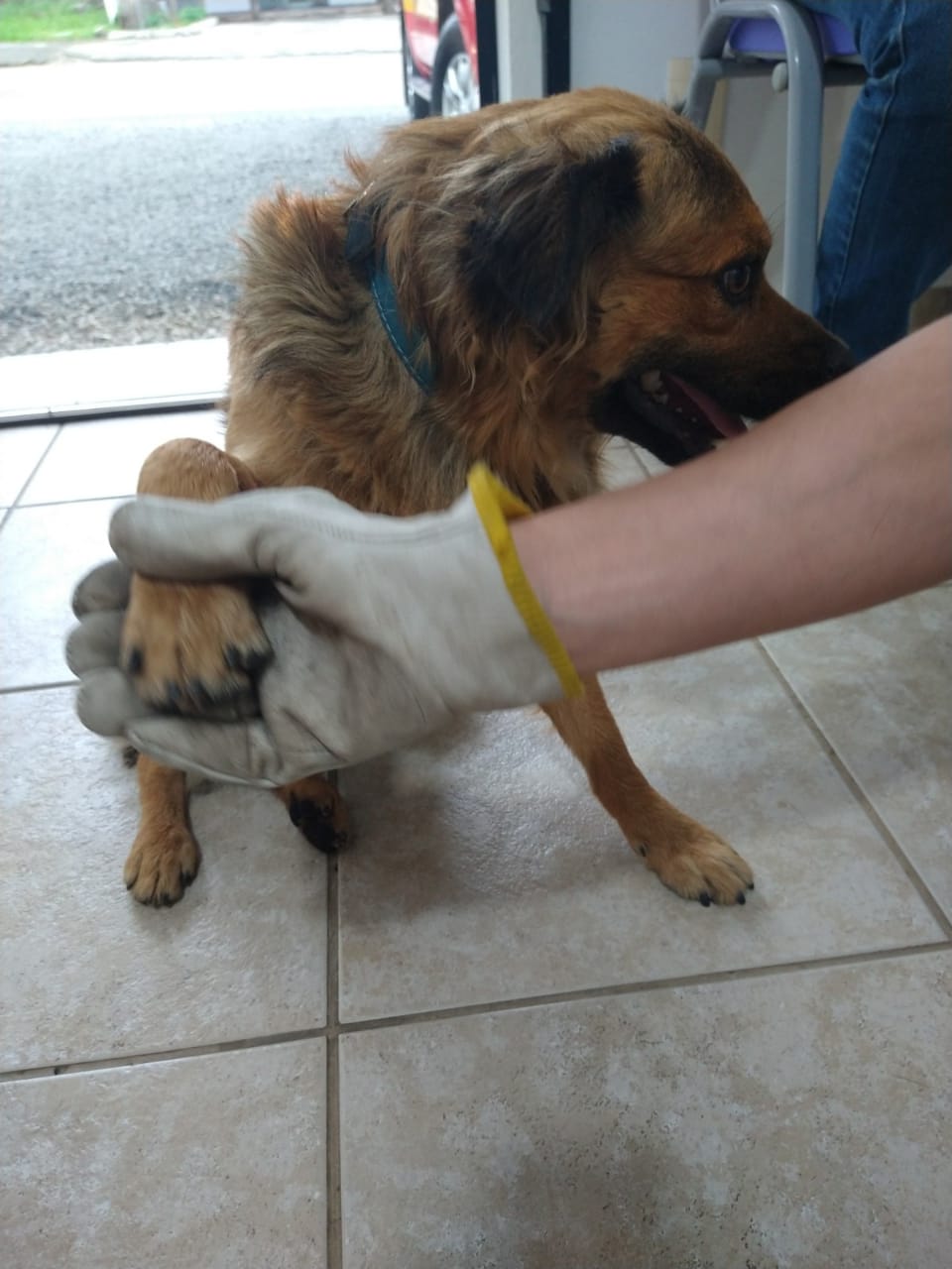 Um cachorro, que foi atropelado em frente ao Corpo de Bombeiros de Criciúma, agora está à procura de seus tutores. O animal já foi levado ao veterinário e passa bem. O cão possui coleira e está bem cuidado.